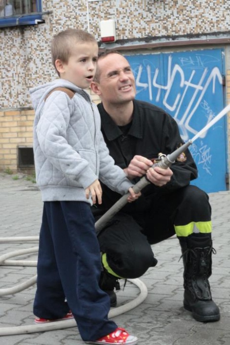 Uwieńczeniem konkursu były czekające na podwórku szkolnym pojazdy uprzywilejowane : straż pożarna, ambulans i wóz policyjny. Każde dziecko mogło wejść do środka, dotknąć, usiąść. Emocji i radości było wiele.