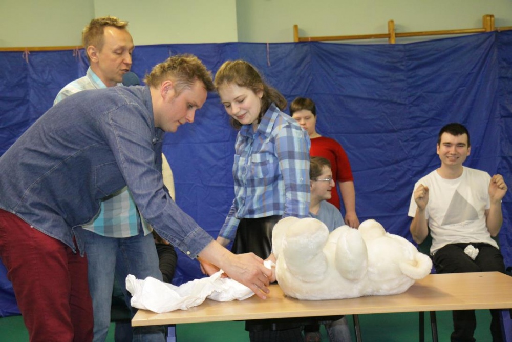 W drugiej części imprezy znalazł się konkurs dla naszych uczniów, do którego inspiracją stał się jeden z programów TV, i który, jak całą imprezę, wszyscy potraktowali z przymrużeniem oka. "Dziadek szuka żony" - to konkurs w którym nasi uczniowie wcielili się w postaci dziadków, a kandydatki wykonywały różne zadania związane z karmieniem, transportem i ubiorem. Oczywiście poradziły sobie rewelacyjnie, a najwięcej śmiechu wywołało zadanie wyboru stroju dla dziadka na spacer.