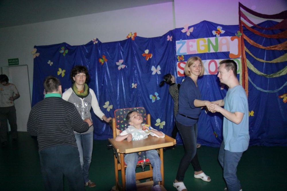 Tegoroczni absolwenci naszej szkoly: Daria Sujewicz, Róża Plączkowska, Agnieszka Janik, Barbara Węglorz, Alicja Buc oraz Dominik Magnewski, podczas wspólnej imprezy żegnali sie z kolegami, swoimi nauczycielami oraz innymi pracownikami szkoły.