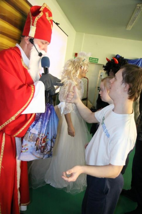 Wizyta Świętego Mikołaja odbyła się w ramach cotygodniowego szkolnego spotkania z piosenką, przygotowywanego i prowadzonego przez panie: Agnieszkę Antosz, Agnieszkę Malinowską i Joannę Sobik. Uczniowie pięknie zademonstrowali swoje umiejętności - śpiewali i tańczyli, świetnie się przy tym bawiąc. Na zakończenie wspólnie obejrzeli film pt. „Prawdziwa historia o Świętym Mikołaju”.