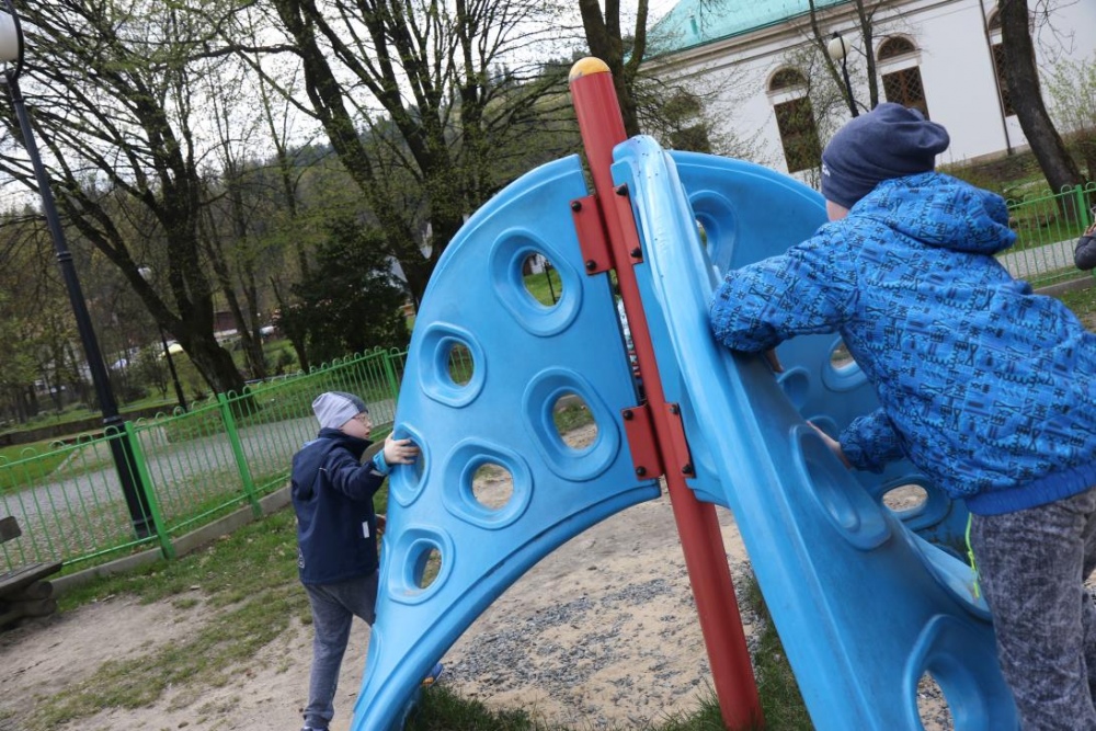 III DZIEŃ - PONIEDZIAŁEK - 24 kwietnia 2017r. - to poranne zajęcia w podgrupach. Podzieliliśmy się na dwie ekipy. Pierwsza miała okazję wspólnie uczyć się lub doskonalić w sztuce lepienia pierogów w ośrodkowej stołówce. Pod okiem pań kucharek oraz naszych opiekunów z pracy rąk naszych uczniów wyszły przepyszne pierowgi z truskawkami:). Zajęcia kończyła degustacja własnych wyrobów. Uczniowie tej grupy udali się także do pobliskiej zagrody. Mogli tam poobserwować i nakarmić sympatyczne koniki, a także zajrzeć do kurnika, a że mieli szczęście udało im się zebrać troszkę jajek:) Druga grupa w tym czasie spędzała czas nie mniej aktywnie z tym, że na sali gimnastycznej realizując zajęcia ruchowe z elementami integracji sensorycznej. Obie ekipy jeszcze przed obiadem znalazły czas i energię, by wybrać się na spacer. Odwiedziliśmy przy okazji pobliską siłownię pod "chmurką" oraz plac zabaw.