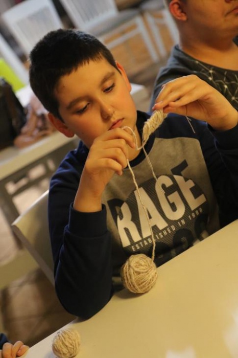 Po obiedzie czekały nas warsztaty plastyczno - techniczne, podczas których uczniowie mieli okazję sami wykonać wełniane, niezwykle sympatyczne owieczki. Prowadząca krok po kroku objaśniała jak z kłębka wełny wyczarować to popularne tu w górach zwierzę. Z pomocą wszyscy wykonali to dośc trudne zadanie, i pamiątkowe owieczki wracają z uczniami do domów:)