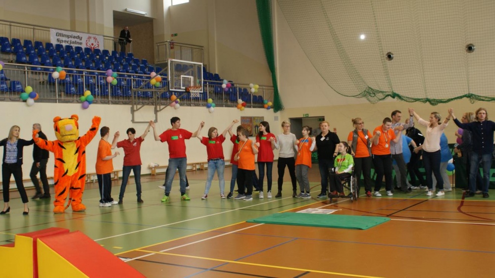Nasza ekipa w składzie: Katarzyna Kroker, Patrycja Głodel, Paulina Jeszka, Daniel Kramer, Artur Czypiruk, Kuba Szczepankowki oraz Adrian Stebel podczas XXIII Śląskiego Dnia Treningowego Programu Aktywności Motorycznej Olimpiad Specjalnych Łaziska Górne 27.04.2017.