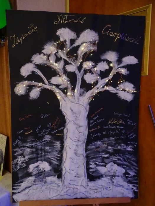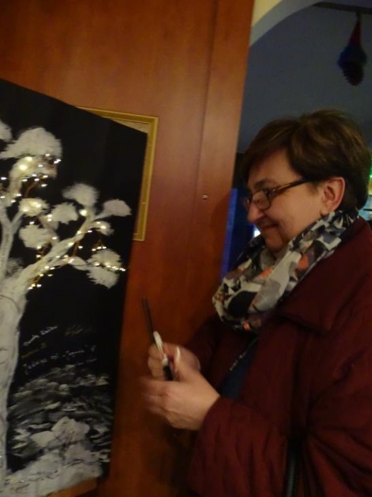 W spotkaniu wzięły udział 32 osoby, które witał gospodarz - organizator - ukryta w męskim przebraniu pani Aleksandra Kawczyńska oraz przebrane w stroje ludowe Panie - Maria Zientarska i Aleksandra Szymała - zapraszając każdą z uczestniczek imprezy, do osobistego wpisu, na specjalnie przygotowanym w tym celu plakacie -" Zimowe Drzewo ".