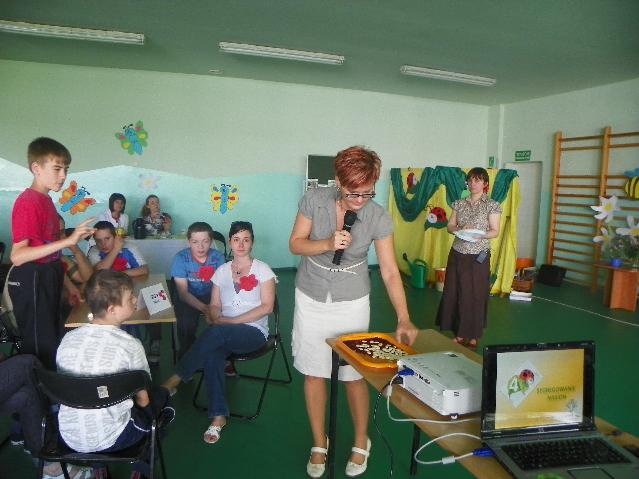 Największą ilość punktów i I miejsce zdobyła reprezentacja Specjalnego Ośrodka Szkolno-Wychowawczego z Rybnika. Gratulujemy! Były też oczywiście nagrody: soki, bańki mydlane (dla każdego uczestnika) oraz układanki dydaktyczne dla drużyn. A na koniec pamiątkowe zdjęcie.