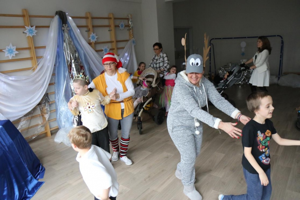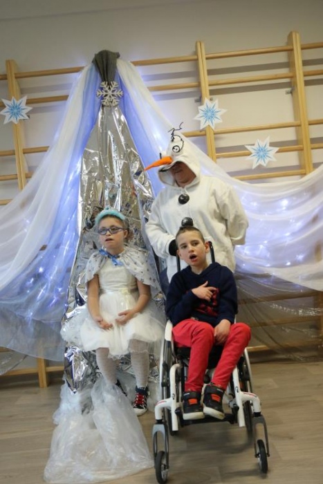 Na bal dzieci, a także pracownicy szkoły przybyli w przepięknych, kolorowych i bajecznych strojach. Wśród uczestników nie mogło zabraknąć tematycznych postaci z Elsą, Anną, Svenem i Olafem na czele! Przybyłych gości przywitała Elsa, zapraszając wszystkich do zimowych zabaw. Nie zabrakło "lodowego poczęstunku" oraz pląsów przy muzyce, wśród których dominowały ulubione hity z bajki "Mam tę moc", "Ulepimy dziś bałwana":) Było wesoło, a gorąca atmosfera ogrzała nie tylko mroźny zamek, ale i całą krainę;)