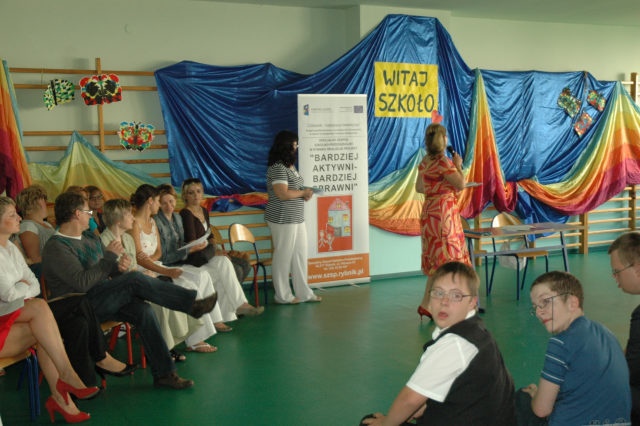 Z dniem 5 września br. wznowione zostały zajęcia realizowane w ramach projektu ” Bardziej aktywni – bardziej sprawni”. Podczas uroczystości rozpoczynającej nowy rok szkolny 2011/2012 zachęcaliśmy nowych uczniów i uczennice do uczestnictwa w projekcie. Już teraz zaprosiliśmy wszystkich ojców do wzięcia udziału w „Warsztatach dla taty”, które planowane są na październik br. Wciąż uzgadniane są z rodzicami terminy, w celu ustalenia ostatecznego planu zajęć. Przypominamy, że również w tym roku dzieci po zajęciach projektowych odwozić do domu będzie bus odpowiednio przystosowany do ich potrzeb. Zapewniamy również opiekę podczas odwozu, stąd raz jeszcze serdecznie zachęcamy rodziców/opiekunów do zgłoszenia udziału ich dziecka w zajęciach. Wszystkie zajęcia w ramach projektu finansowane ze środków Unii Europejskiej w ramach Programu Operacyjnego Kapitał Ludzki.