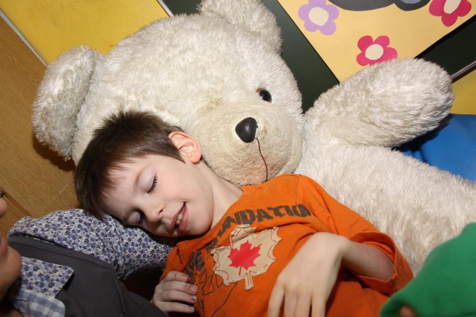 Dzieci zaczęly od przygotowania laurki z podobizną Misia i życzeniami. Następnie zabrały się do dekorowania sali: dmuchały balony, wieszały serpentyny. Potem trzeba było przygotować "poczęstunek" - dzieci zrobiły ciastelinkowe ciasteczka i przygotowały odpowiednią na deser zastawę stołową. Pozostało czekać na upragnionego gościa...