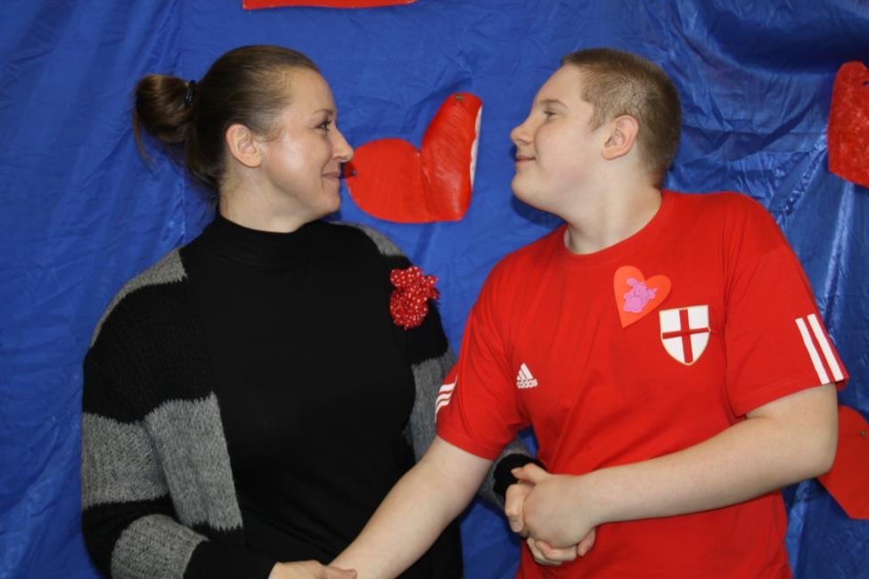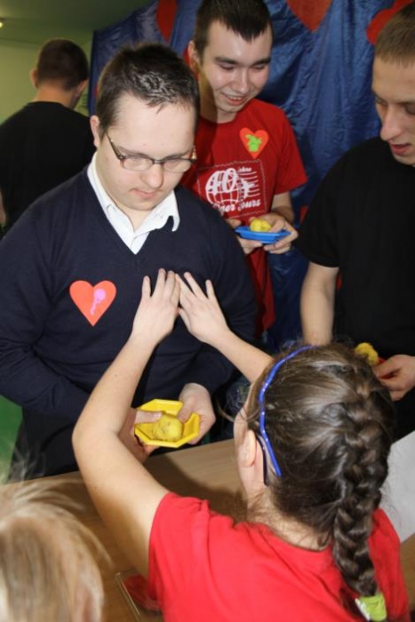 Czoła wyzwaniom musieli stawić także przedstawiciele zespołów rewalidacyjno - wychowawczych, którzy malowali czerwone serca gąbkami i segregowali przedmioty według kolorów. Uwieńczeniem „walentynkowych” zmagań na „Prawdziwą Dziewczynę” i „Prawdziwego Chłopaka” był słodki poczęstunek oraz to, co nasi uczniowie lubią najbardziej - dyskoteka w rytmie największych i najpopularniejszych szlagierów.