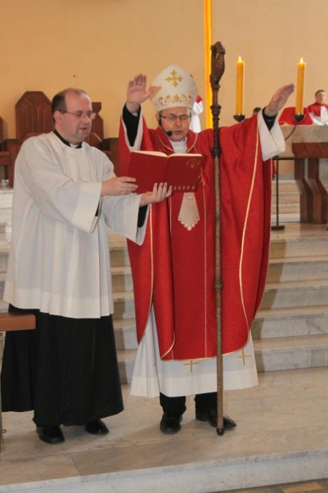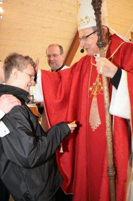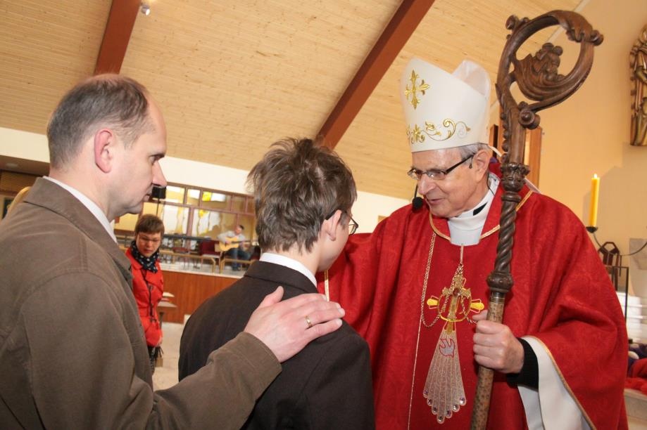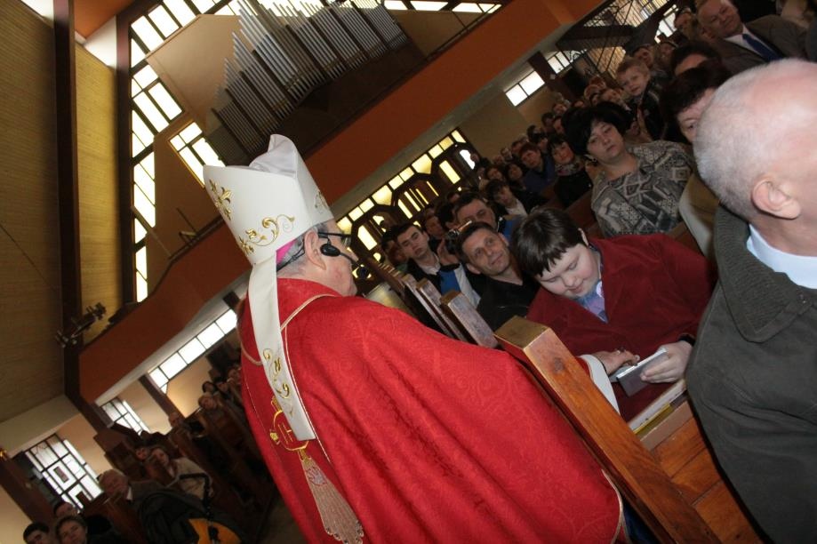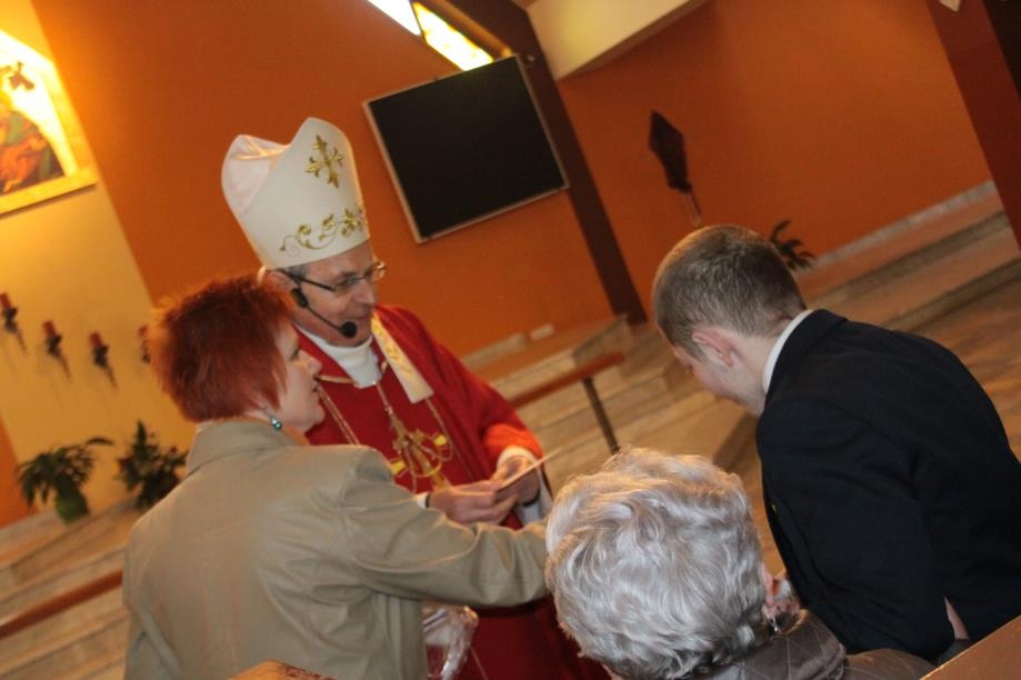 We wtorek 15 kwietnia miało miejsce uroczyste wydarzenie. 35 uczniów gimnazjum naszej szkoły w parafii p.w. Świętej Jadwigi Śląskiej podczas Mszy szkolnej w ramach wielkopostnych rekolekcji przyjęło Sakrament Bierzmowania. Sakramentu udzielił ks. Biskup pomocniczy diecezji częstochowskiej Antoni Długosz, znany z programów TVP dla dzieci „Ziarno”.