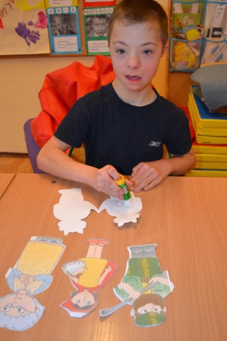 - Komunikacja alternatywna - o tej formie zajęć rewalidacyjnych więcej można dowiedzieć się tutaj. W ramach zajęć projektowych do tej pory zostały zdiagnozowane wyjściowe umiejetności uczniów objetych tą formą wspomagania. Rozpoczęli ćwiczenia naśladowania gestów grzecznościowych: powitanie, pożegnanie, prośba, podziękowanie, przeprosiny - do tekstu piosenki. Uczyli się również wskazywać osoby: ja, pan, chłopiec, dziewczynka, pani - na materiale obrazkowym oraz w sytuacja zadaniowych. Uczniowie utrwalali również symbole wg systemu MAKATON t.j.: dom, szkoła, zabawki. Wszczyscy uczestnicy brali udził z zajęciach bardzo aktywnie i chętnie.(przygotowała: Agnieszka Antosz).