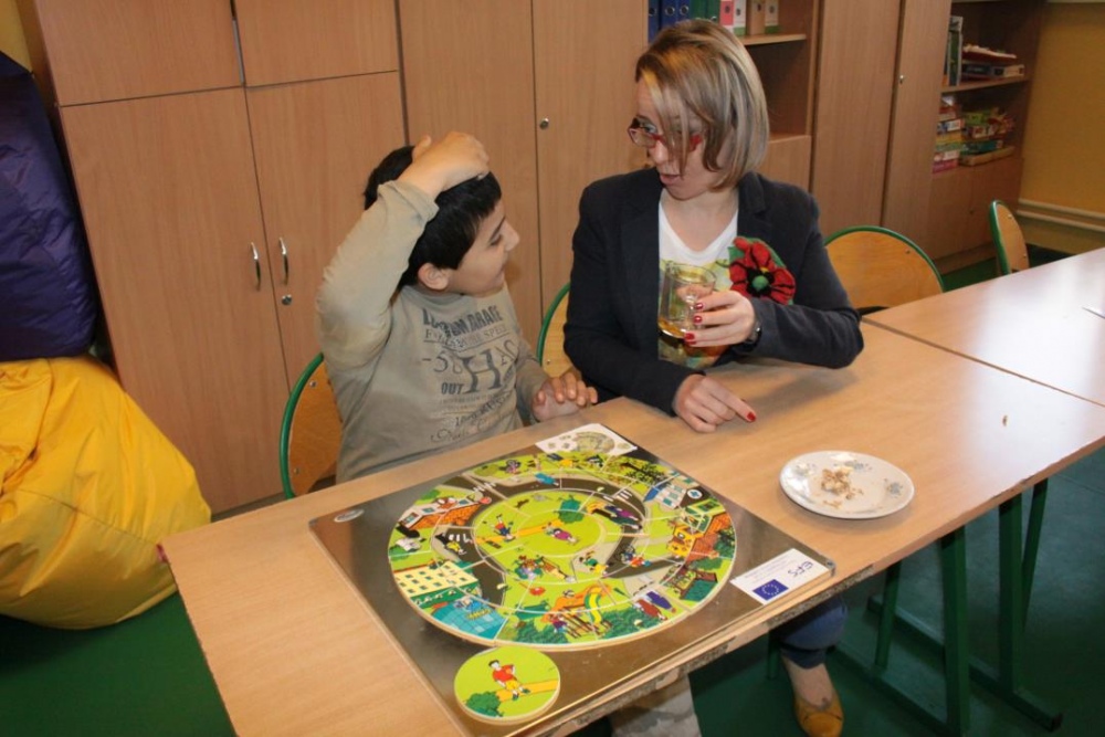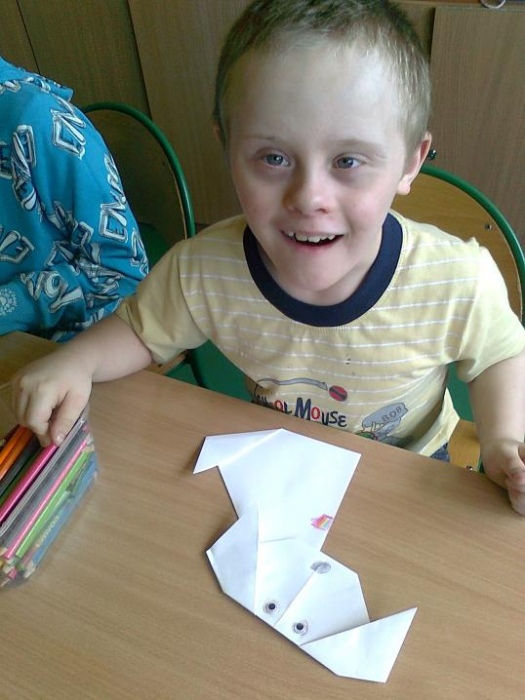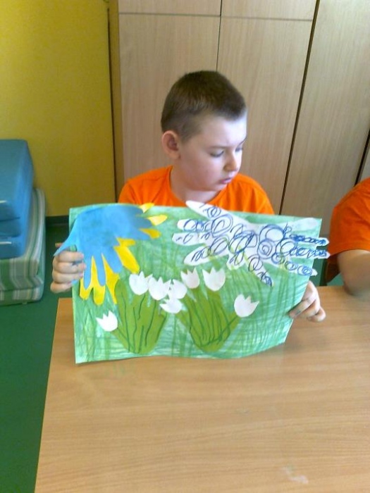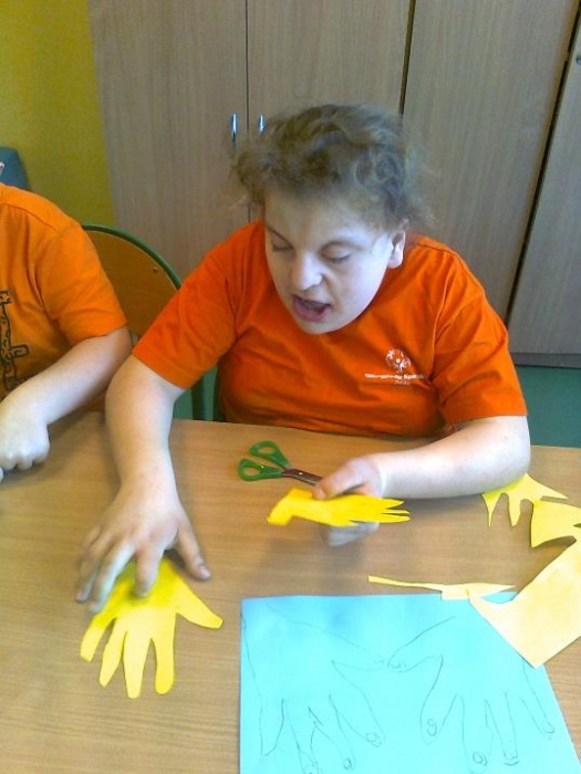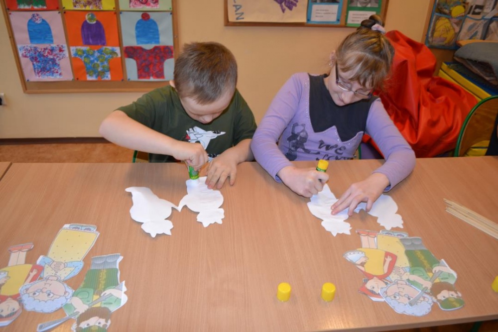 - Bajkoterapia - W zajęciach bajkoterapii udział bierze 4 uczestników. Dotychczasowa praca skupiała się na wydłużaniu ich czasu skupienia uwagi, doskonaleniu myślenia przyczynowo- skutkowego oraz rozwijaniu percepcji słuchowej i wzrokowej. W czasie zajęć uczestnicy wykonywali tematyczne prace plastyczne, jak również podejmowali próby odgrywania ról poznanych postaci przy użyciu pacynek. Korzystano z tablicy multimedialnej celem zobrazowania czytanego tekstu, bądź oglądania krótkich bajek. Uczestnicy nabywali umiejętności współpracy w grupie poprzez rozwijanie postawy koleżeńskiej i przestrzegania właściwych norm zachowań. (przygotowała: Martyna Płonowska - Troszka)