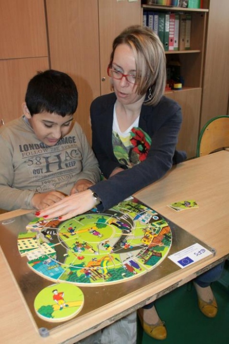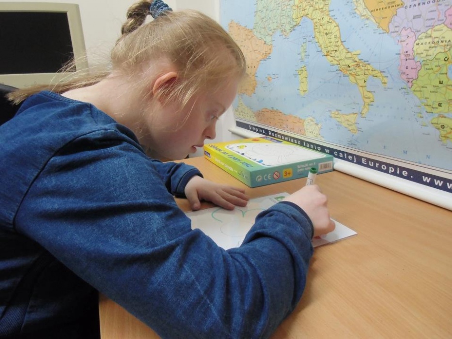 - Zajęcia korekcyjno - kompensacyjnie - Prowadzone zajęcia korekcyjno-kompensacyjne mają na celu korekcję zaburzonych funkcji i kompensację braków. W wyniku ćwiczeń i różnorodnych form aktywności, u uczniów rozwijana jest motoryka mała i duża, spostrzegawczość, koordynacja wzrokowo - ruchowa, pamięć. Wykonywane zadania mają wpływ na poprawę ogólnego rozwoju ucznia na miarę jego możliwości. Z tej formy rewalidacyjnej w ramach projektu ma okazję skorzystać kilkoro uczniów. Zajęcia każdego z nich mają inne cele, wynikające z indywidualnego programu terapeutycznego. Przykładowo u jednago z uczniów, do tej pory, praca skupiła się nad ćwiczeniami i zabawami rozwijającymi percepcję wzrokową i koordynacje wzrokowo - ruchową.oraz nad kształtowaniem i kontrolowaniem ruchów rąk. (przygotowały: Ewelina Jagieło, Agnieszka Malinowska).