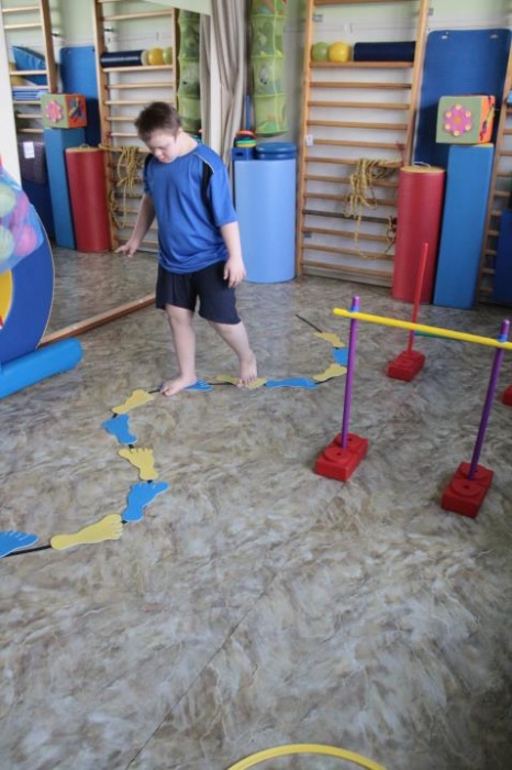 poprawie funkcji w obrębie bazowych sytemów zmysłowych: przedsionkowego, dotykowego, prorioceptywnego, a także wzrokowego. Pracowano nad rozwijaniem czucia ciała, czucia ciała w przestrzeni. Celem była również aktywizacja ruchowa, wdrożenie do udziału w sporcie osób niepełnosprawnych intelektualnie. Jeden z uczniów podjął treningi sportowe w zakresie programu MATP, bowlingu, drugi natomiast, poznaje elementy podstawowych dyscyplin sportowych. Zajęcia ruchowe są również okazją do ćwiczenia czynności samoobsługowych t.j.: ubieranie, rozbieranie części garderoby, czy składanie ubrań. (przygotowała: Magdalena Kasprzak)