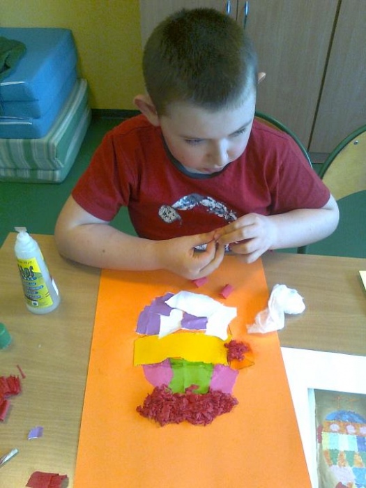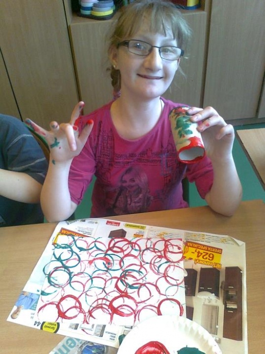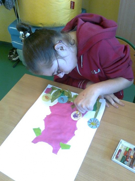 Arteterapia - Zajęcia plastyczne mają ogromną wartość rewalidacyjno-terapeutyczną w edukacji dzieci niepełnosprawnych intelektualnie i umożliwiają rozwijanie ich aktywności twórczej. Czynności: rysowania, malowania, lepienia, wycinania są dla dziecka radosną zabawą, sprawiają przyjemność, uczą wytrwałości, odpowiedzialności, współpracy w zespole, a jednocześnie wykonywane działania zmuszają dziecko do zastanawiania się, dzięki czemu wzbogaca się jego wyobraźnia. Działania plastyczne podejmowane z dziećmi mają ułatwić nawiązanie kontaktu emocjonalnego, sprzyjać budowaniu właściwych relacji nauczyciel - dziecko. Pozalekcyjne zajęcia plastyczne przez swoją różnorodność i większą swobodę działania, mogą w znacznym stopniu uwzględnić indywidualne zainteresowania uczniów.