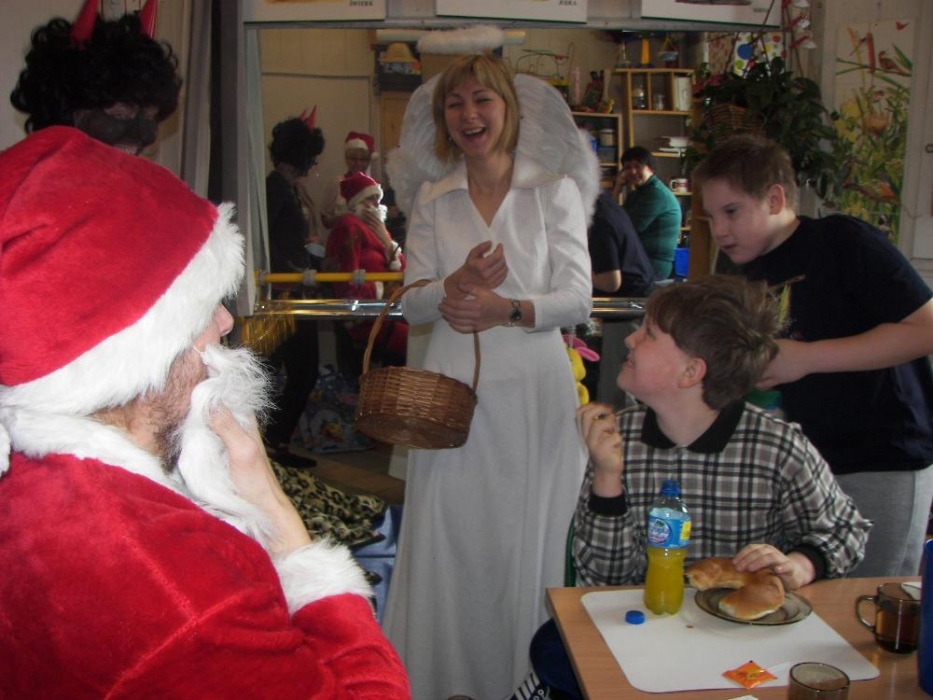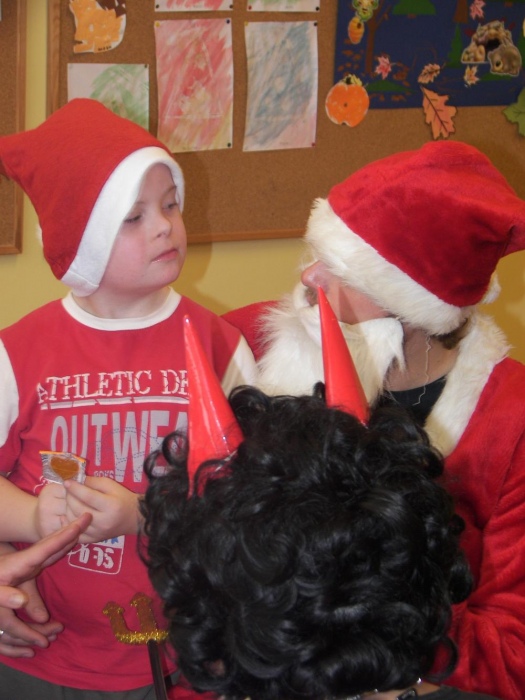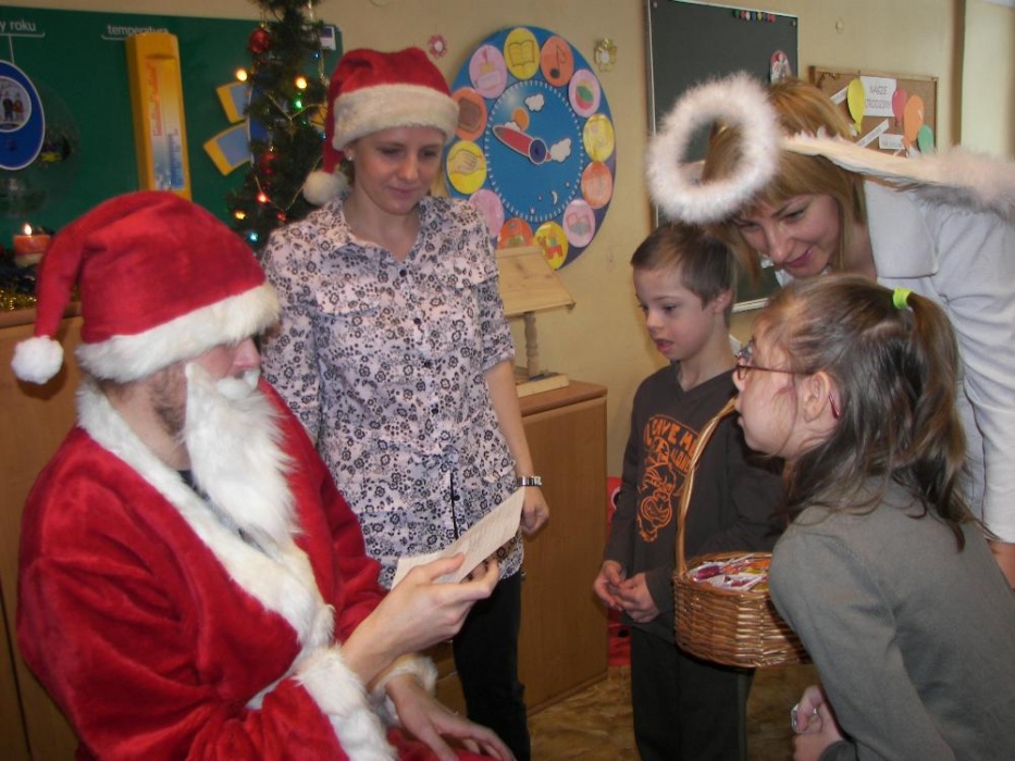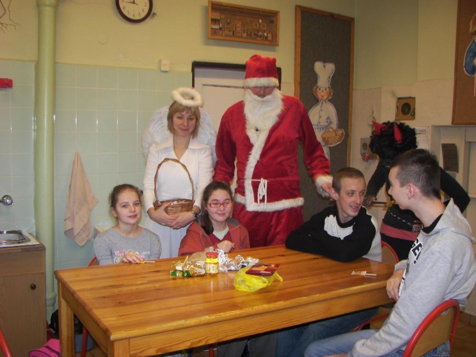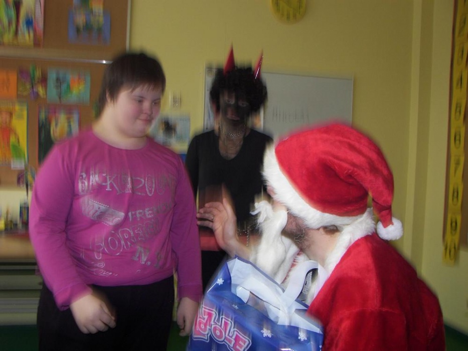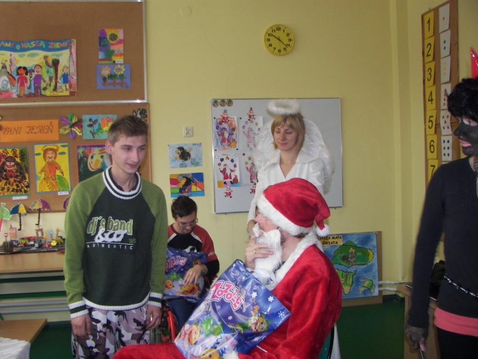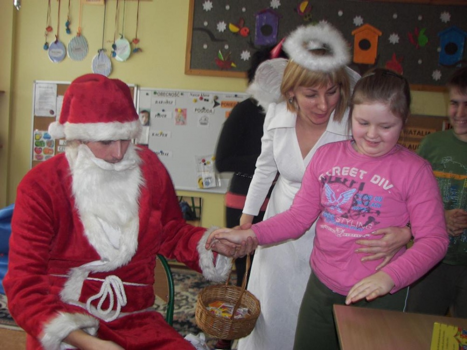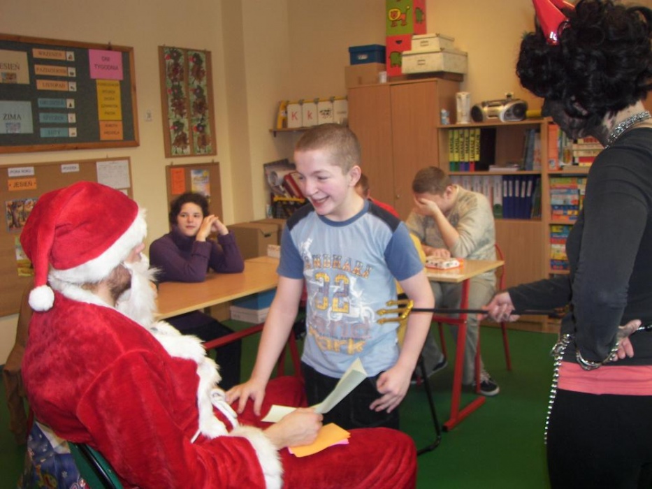 Kazdy wie, że 6 grudnia co roku Święty Mikołaj odwiedza dzieci i daje im prezenty. W tym dniu odwiedził również naszą szkołę . Od samego rana wędrował wraz z aniołkiem, diabełkiem i pomocnikami po szkolnych korytarzach odwiedzał uczniów w klasach i rozdawał upragnione prezenty. A, że Święty Mikołaj wszystko widzi i o wszystkim wie, to spotkania z dziećmi były okazją by jednych pochwalić za dobre zachowanie w minionym roku a innym zwrócić uwagę na to, co wymaga poprawy.