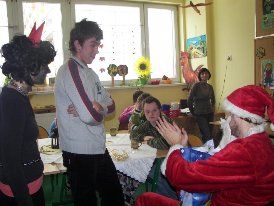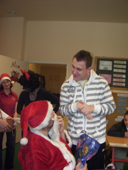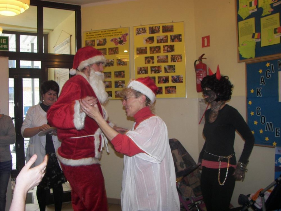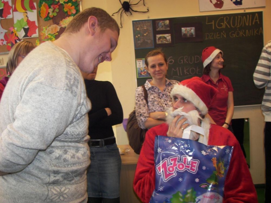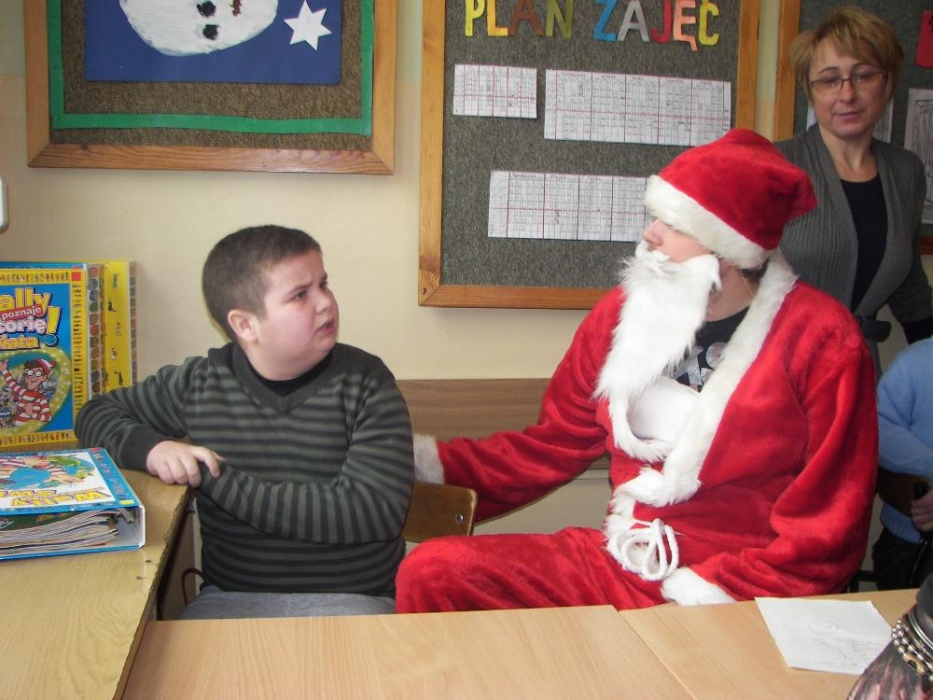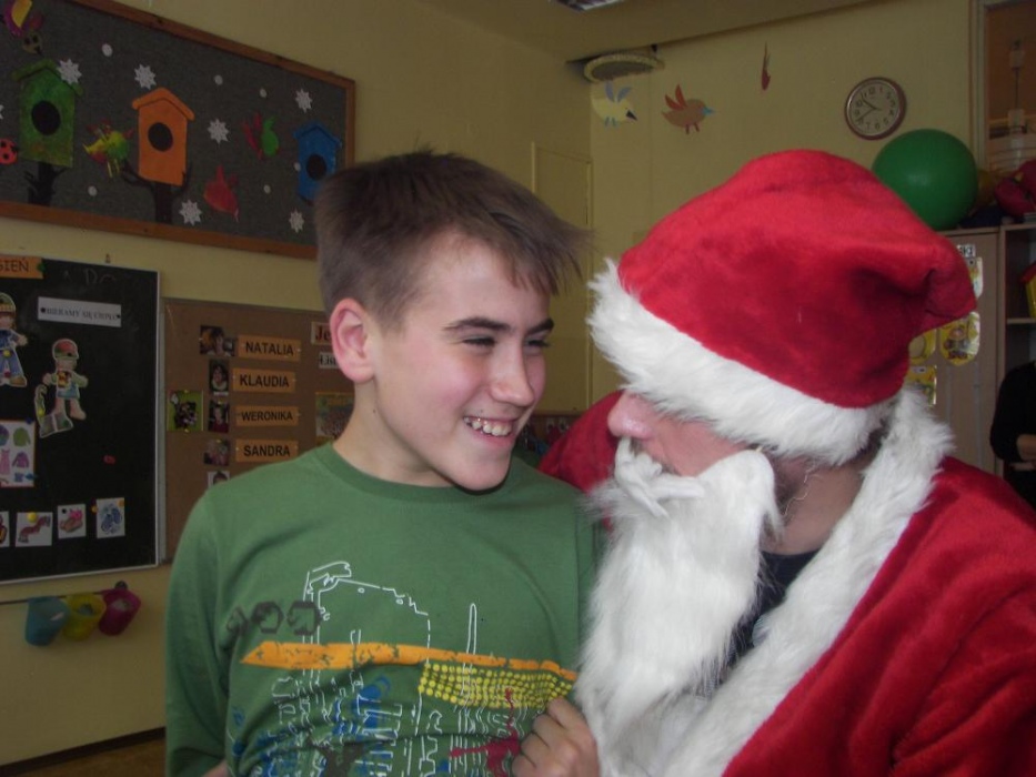 Wizytę Mikołaja z humorem podsumował Bartek z czwartej klasy, słowami: „A w tym roku Święty Mikołaj przebrał się za pana Wojtka”.