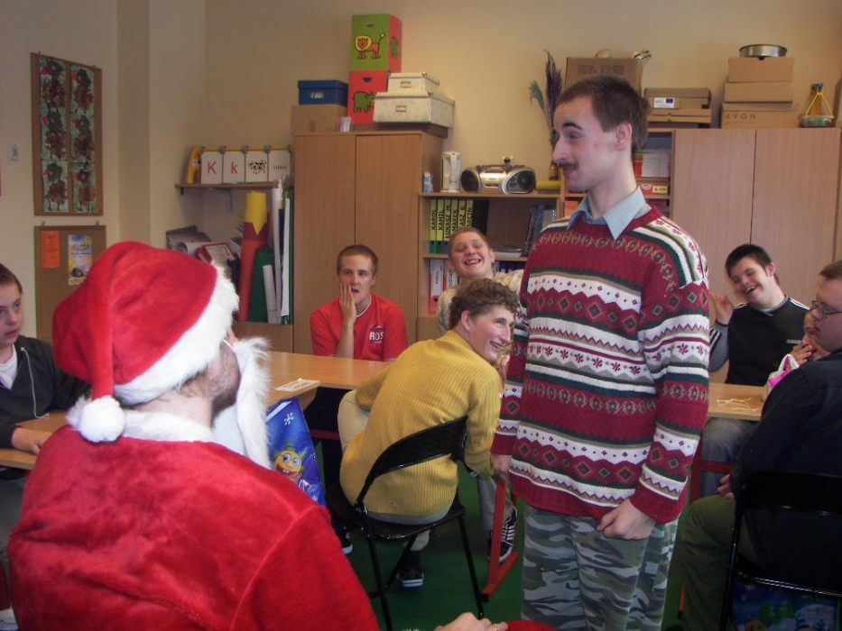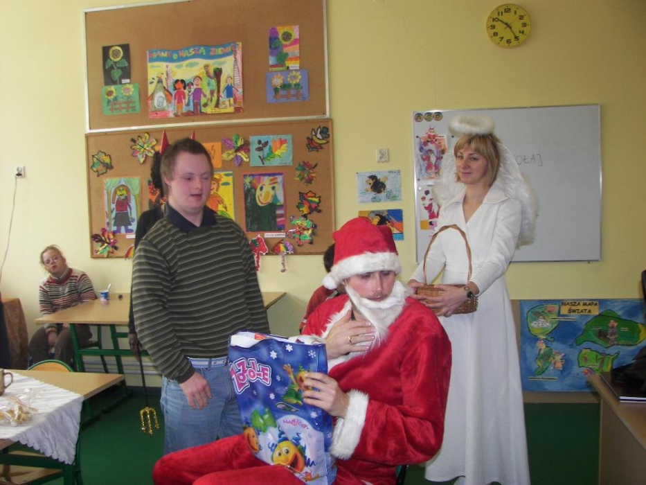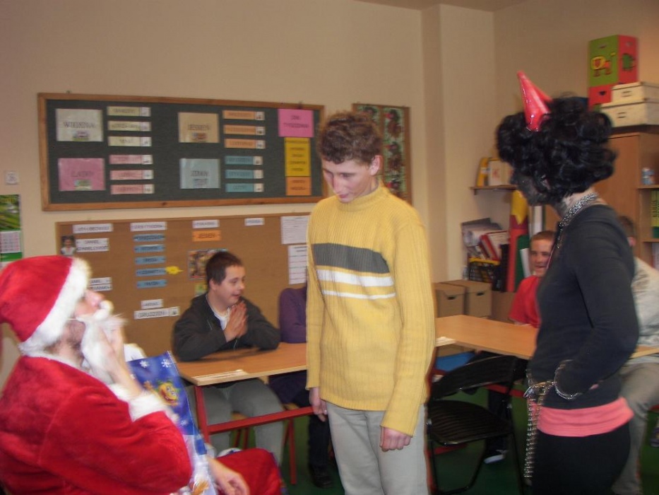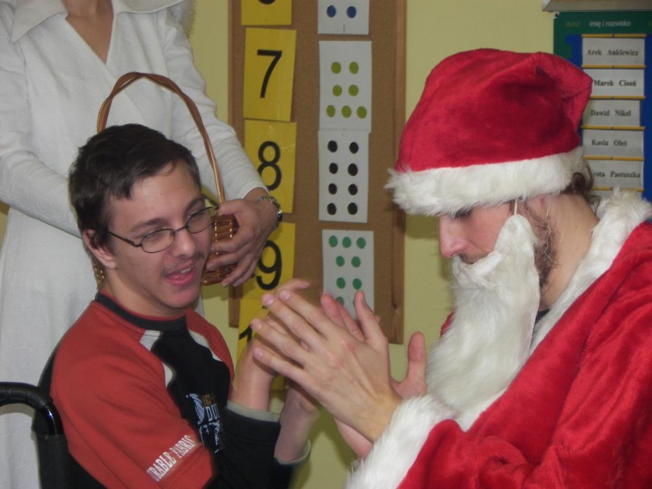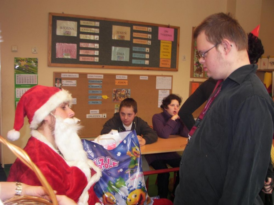 Wizytę Mikołaja z humorem podsumował Bartek z czwartej klasy, słowami: „A w tym roku Święty Mikołaj przebrał się za pana Wojtka”.
