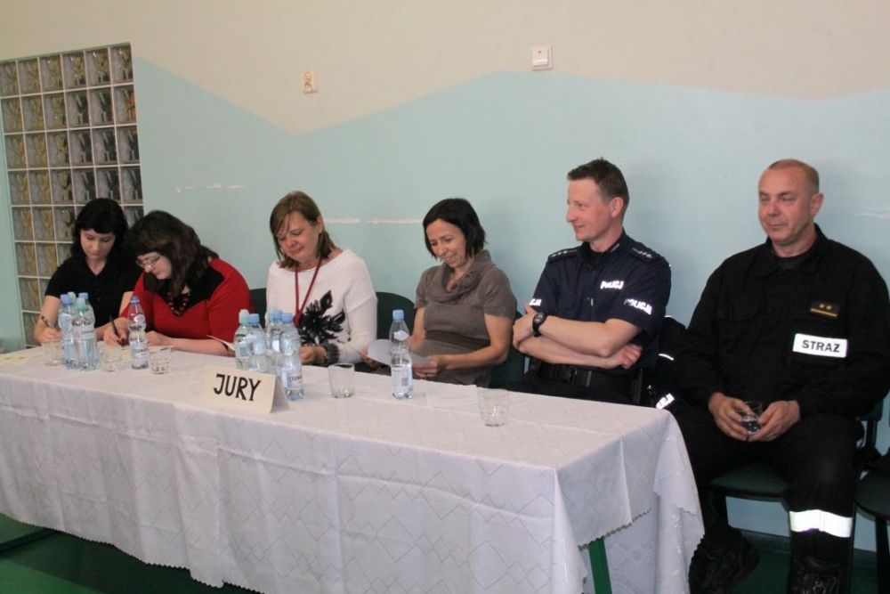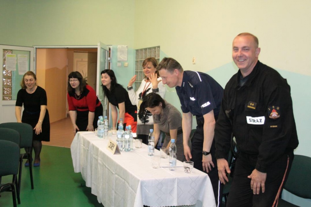 Konkursowi jak co roku przewodniczyło jury - zaproszeni goście – policjant Roman Harbaczewski z Rewiru Nowiny, 8 strażaków z Państwowej Staży Pożarnej w Rybniku, pani Jolanta Łukaszewska ratownik Rybnickiego Sztabu Ratownictwa, pani doktor Anna Koterba z PZP w Rybniku oraz przedstawicielka PSSE pani Jolanta Głowacka.