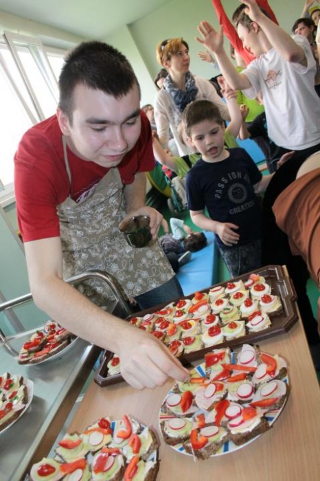Po części artystycznej rozpoczęły się konkurencje dotyczące zdrowego odżywiania, sportu, pomocy medycznej, bezpieczeństwa i ruchu drogowego. Wszystko przeplatane było ćwiczeniami ruchowymi i wspólnym śpiewaniu piosenek o zdrowiu. W trakcie trwania zmagań starsi uczniowie pod okiem pani mgr Małgorzaty Dudek przygotowali wiosenne kanapeczki a podczas przerwy wszyscy uczestnicy je degustowali .