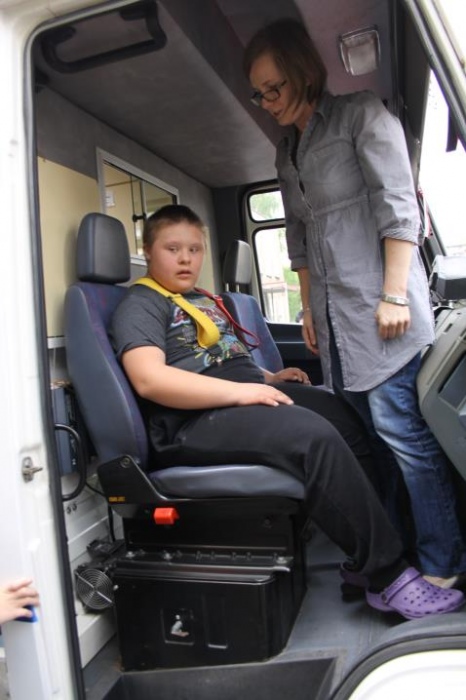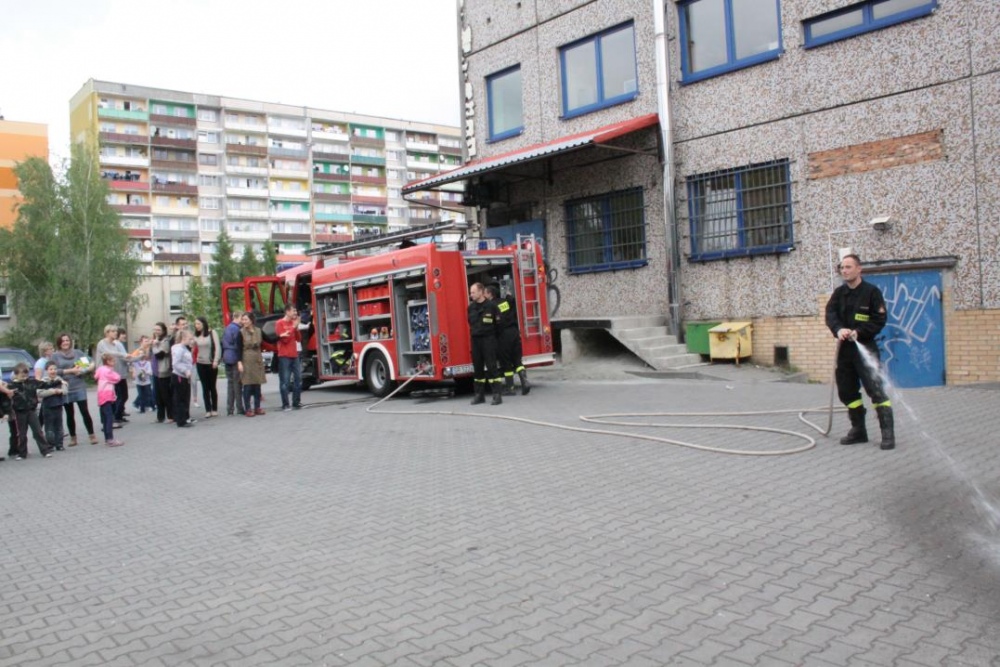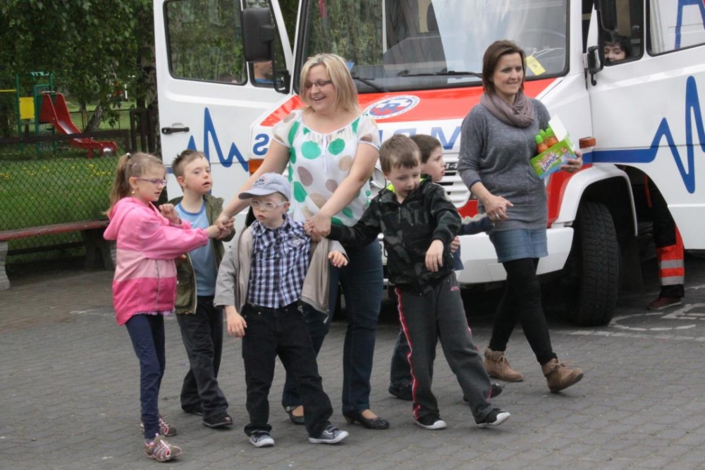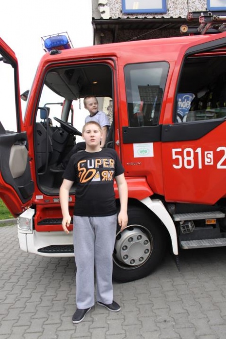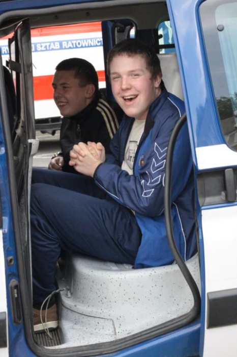 Uwieńczeniem konkursu były czekające na podwórku szkolnym pojazdy uprzywilejowane : straż pożarna, ambulans i wóz policyjny. Każde dziecko mogło wejść do środka, dotknąć, usiąść. Emocji i radości było wiele.