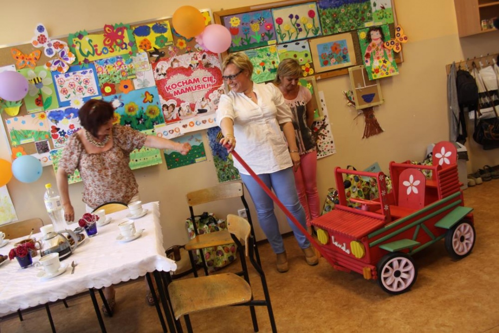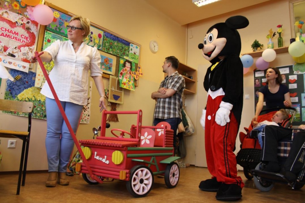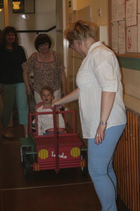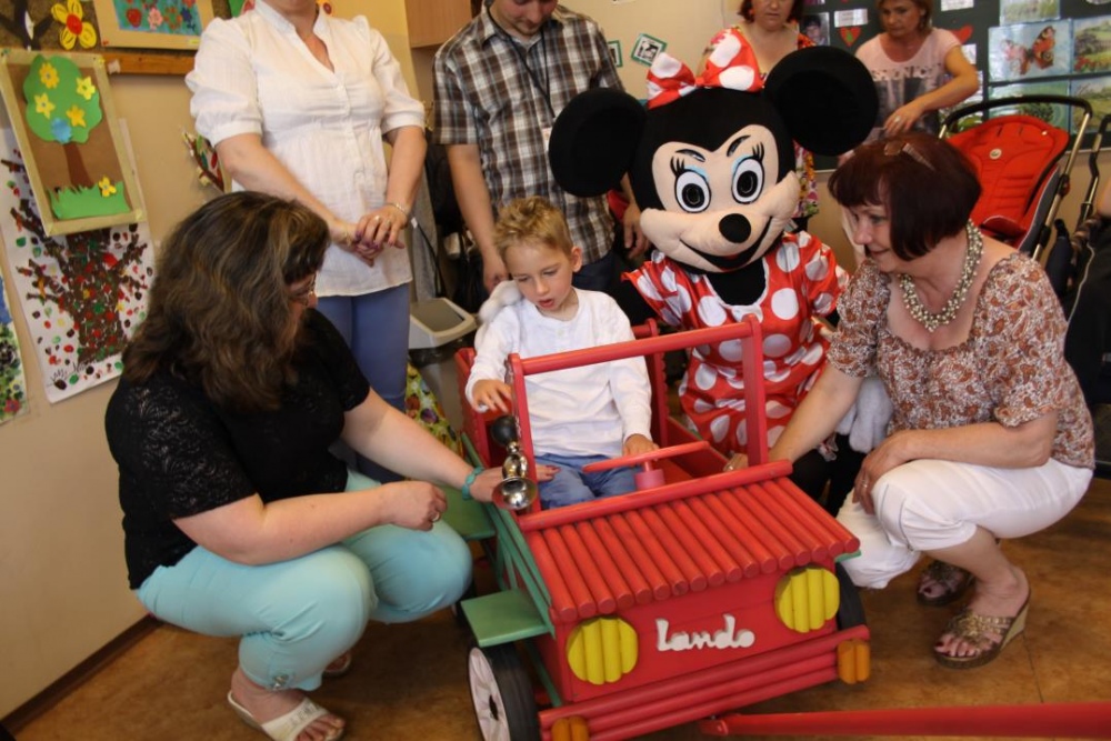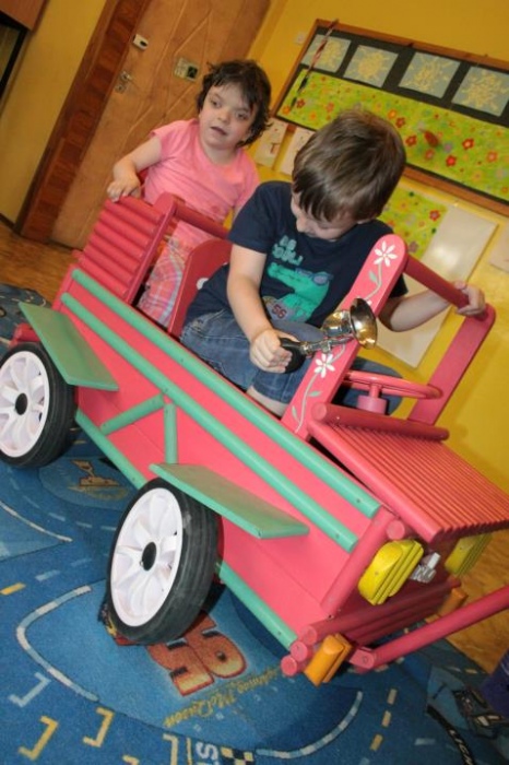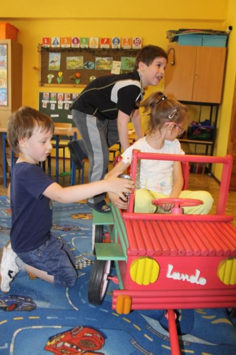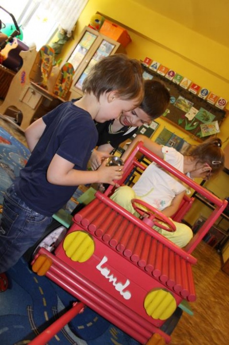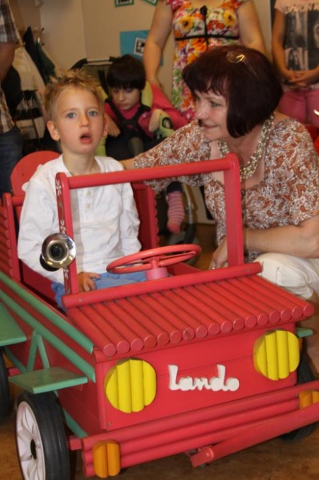 Dnia 22.05.2014 r nasze przedszkolaki otrzymały, z rąk Prezes Oligosa pani Elżbiety Piotrowskiej, wspaniały podarunek w postaci pięknego, czerwonego, dwuosobowego auta. Ten ręcznie zrobiony samochód został wykonany przez pana Bogdana Gizdoń w jego magicznej fabryce P.P.H.U LANDO znajdującej się w Łaziskach Górnych . Radość naszych dzieci na widok takiego pojazdu i możliwość zabawy bezcenna :).