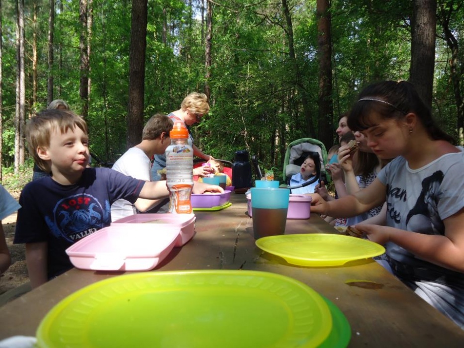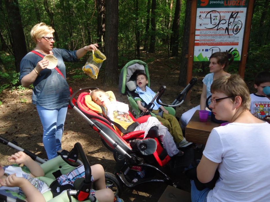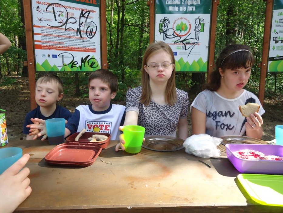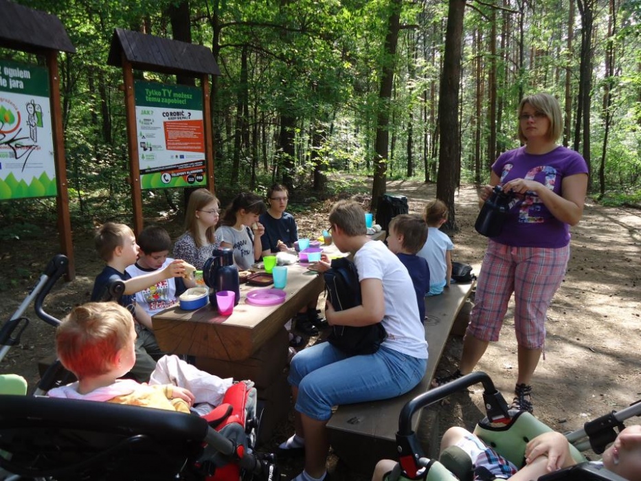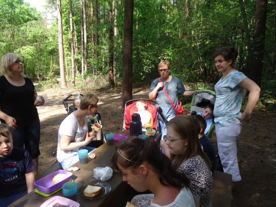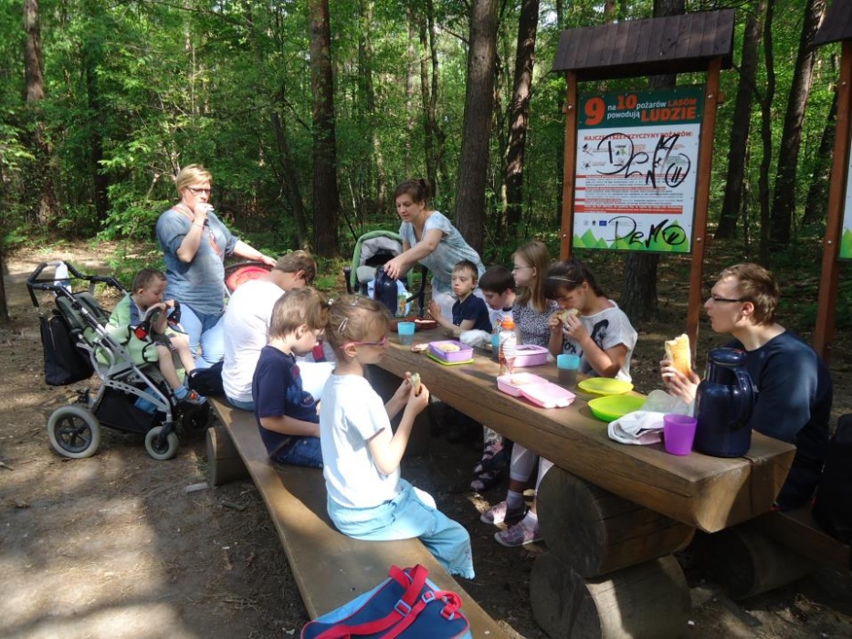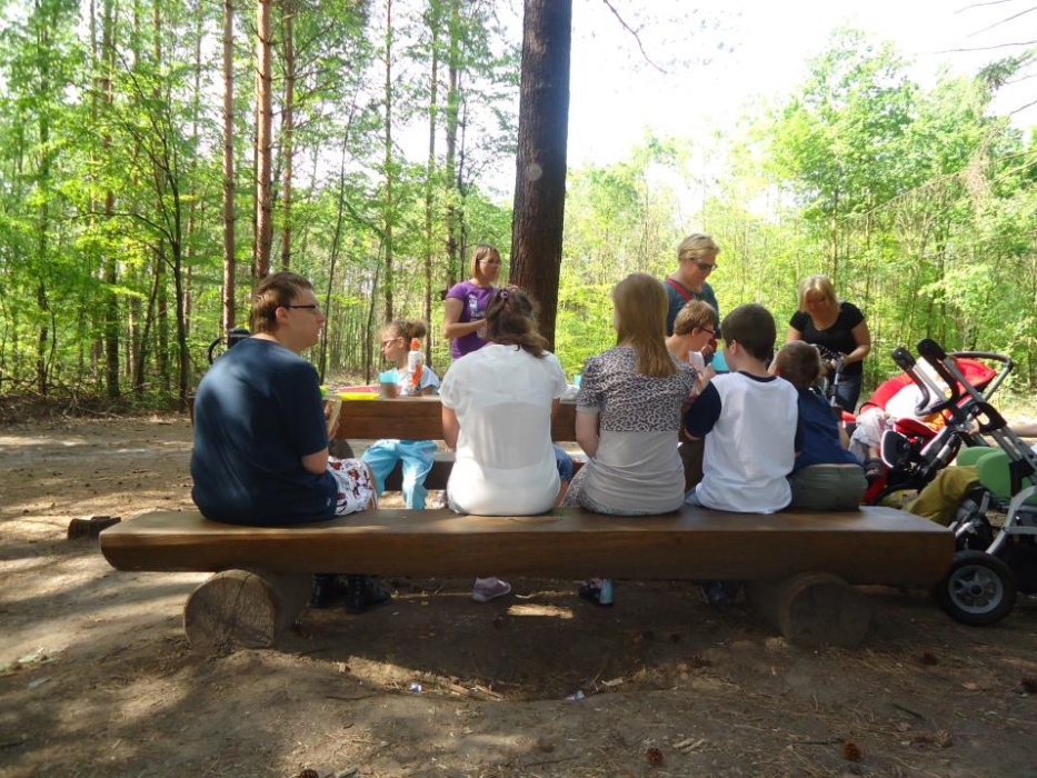 Nie ma to jak śniadanie na łonie natury. W miniony piątek dzieci przedszkolne wraz ze starszymi kolegami z grupy IIBG i wychowawcami odwiedziły pobliski las. Po długiej wędrówce dotarliśmy na miejsce, gdzie dzieci z ogromnym apetytem zjadły śniadanie. W lesie mieliśmy okazję poobserwować przyrodę. Zauważyliśmy ptasie gniazdko, posłuchaliśmy śpiewu ptaków, a w drodze powrotnej natknęliśmy się na maleńką żabkę...