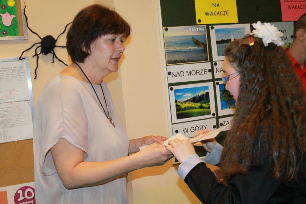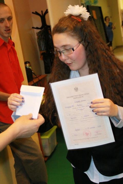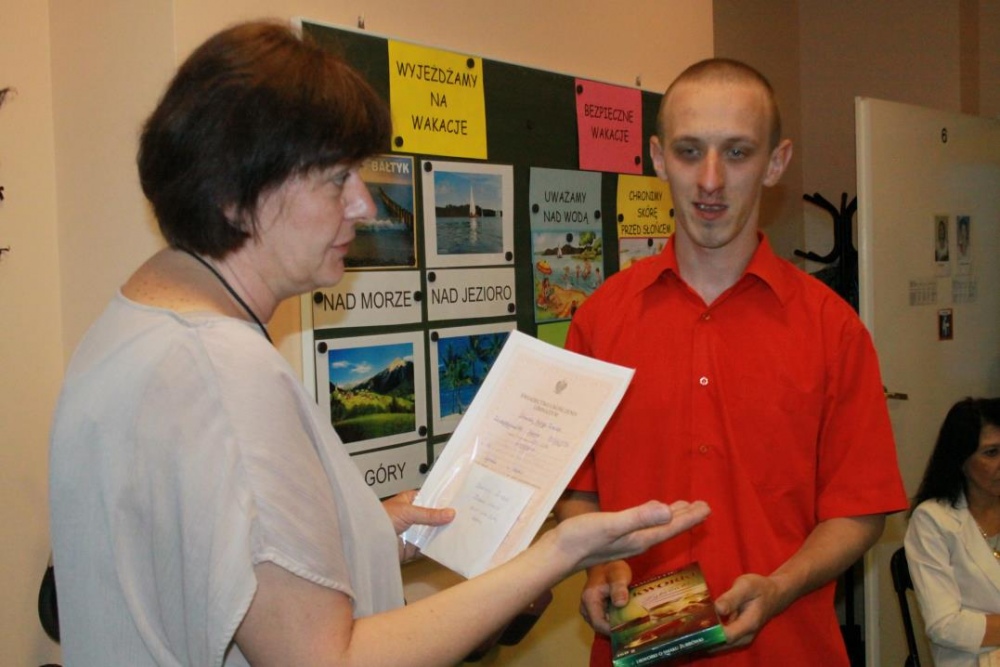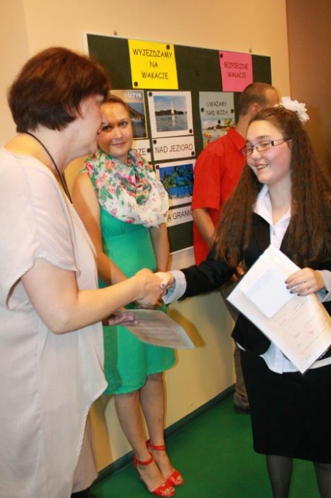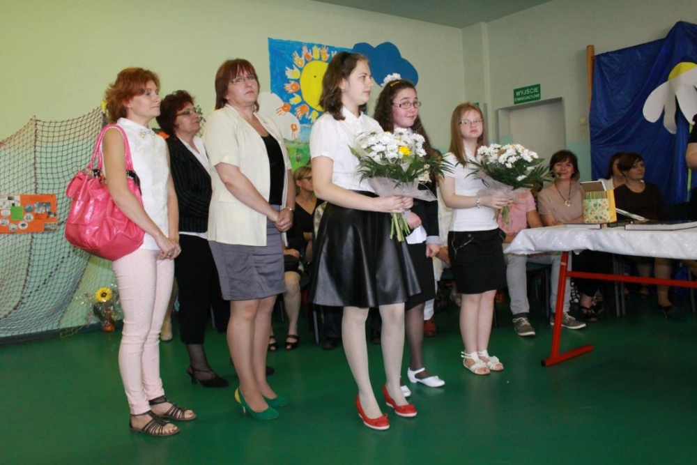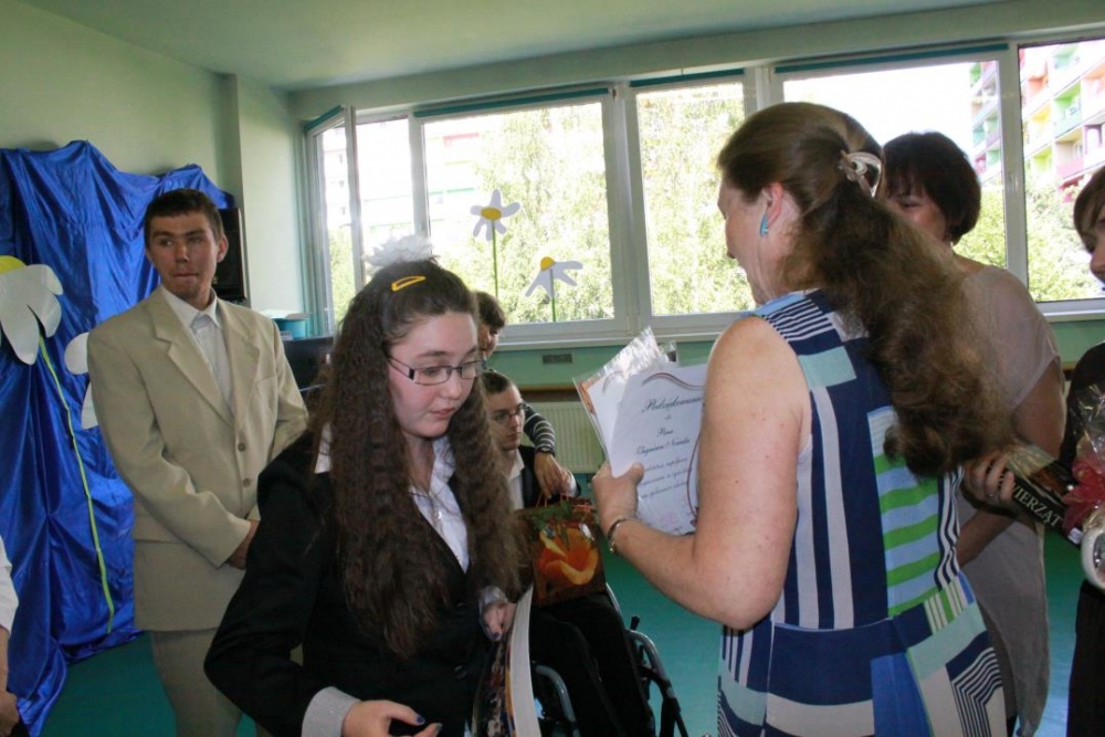 Kolejny rok szkolny za nami. Dnia 27 czerwca w SZS- P w Rybniku zebrali się uczniowie, by odebrać szkolene świadectwa, dyplomy i pamiątki. Zakończenie roku było okazją, by w szczególny sposób nagrodzić, pożegnać i życzyć dalszych sukcesów edukacyjnych absolwentom naszego gimnazjum: Sandrze, Teresie, Anecie, Monice, Andrzejowi, Dominikowi, Michałowi, Dariuszowi. Padły również podziękowania dla rodziców, członków Rady Rodziców oraz Dyrekcji i wszystkich pracowników szkoły za kolejny, bardzo inntesywny i obfity w różnorakie wydarzenia rok szkolny.