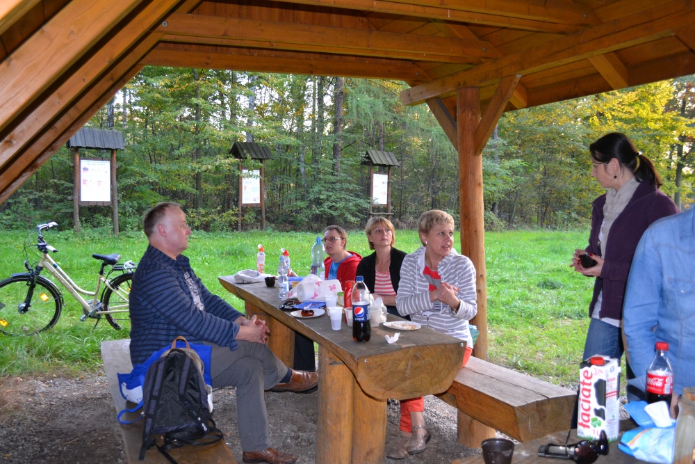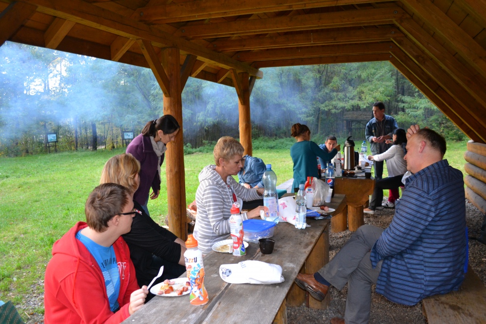 Piękna, jesienna pogoda zachęca wszystkich do spędzania czasu na świeżym powietrzu, dlatego zamiast spotkania z rodzicami w szkolnej sali postanowiliśmy spotkać się w pięknych okolicznościach przyrody organizując klasowe ognisko w Leśnictwie Rybnik – Paruszowiec. W spotkaniu wzięli udział uczniowie klasy IIIaG oraz ich rodzice a ich gościem był nasz absolwent Darek i jego mama.