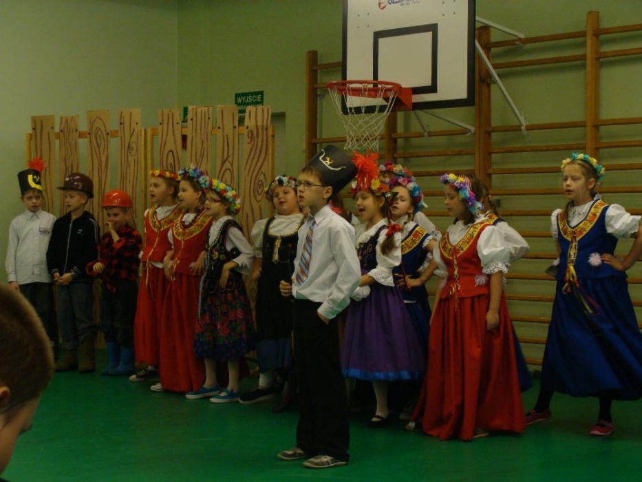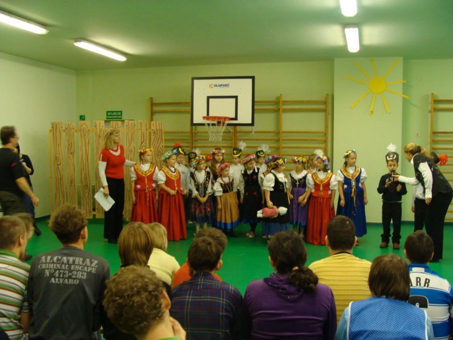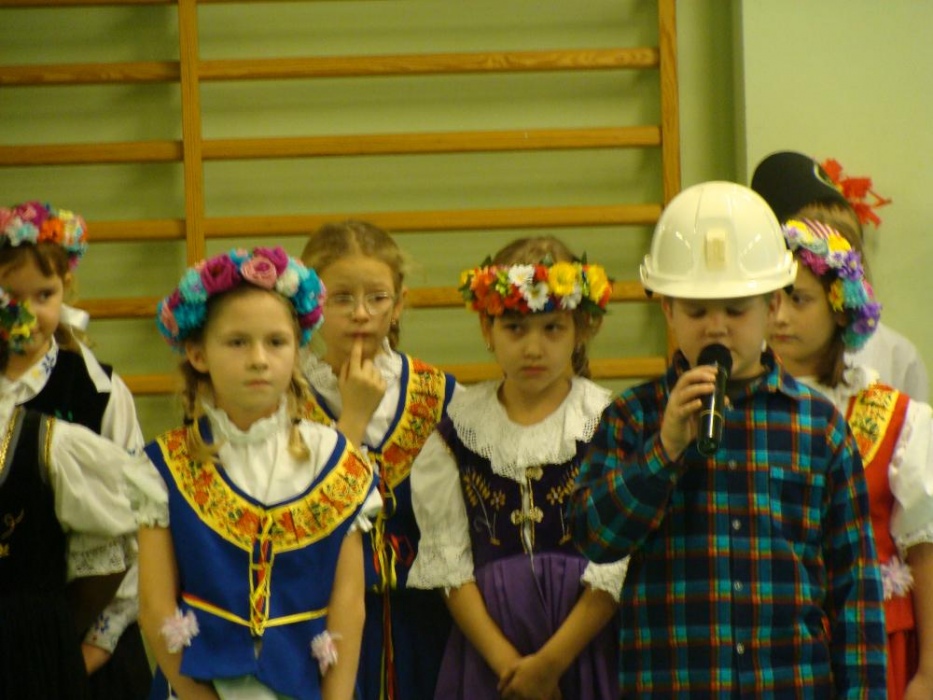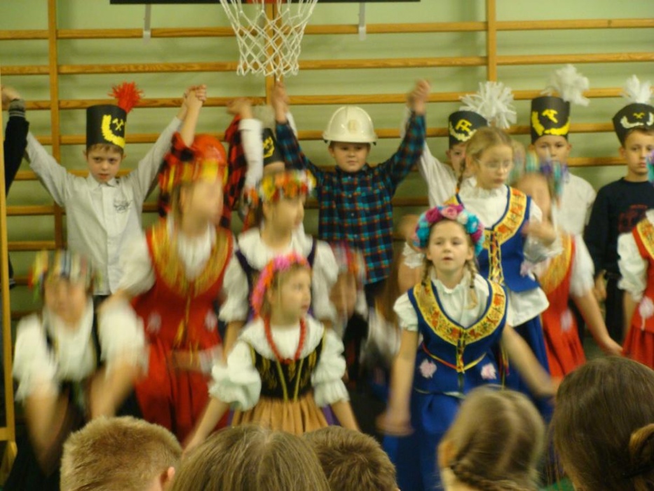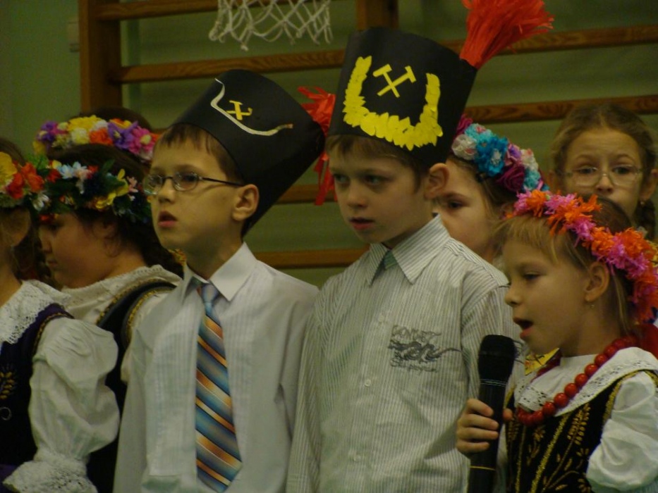 Na występ składały się: wiersze i piosenki o górnikach i kopalni oraz śląskie tańce. Nie zabrakło także wiców o górnikach. Goście przywieźli ze sobą upominki - zabawki dla uczniów naszej szkoły.