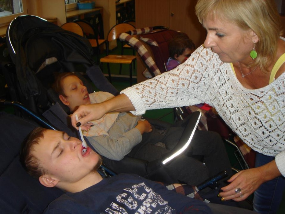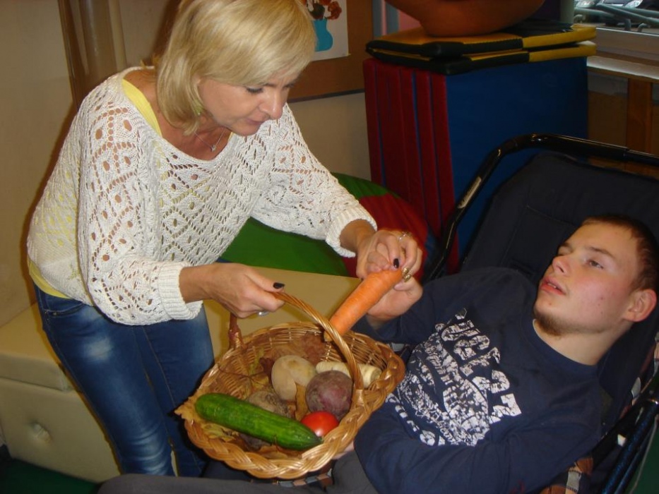 W roku szkolnym 2014/2015 został wprowadzony w I i II oddziale rewalidacyjno - wychowawczym cykl zajęć dotyczących zdrowego odżywiania. Celem jest przybliżenie wychowankom okazów warzyw i owoców w postaci naturalnej i przetworzonej np. soki, koktajle, sałatki, dżemy oraz ćwiczenie umiejętności jedzenia za pomocą łyżki i picia ze szklanki. Praca z dziećmi rozpoczyna się od elementów ,,Porannego kręgu’’ związanego z aktualną porą roku. Jesienią dominuje kolor żółty, zapach – lawenda, smak – miód lub krem orzechowy. Wiodącym żywiołem jest powietrze.