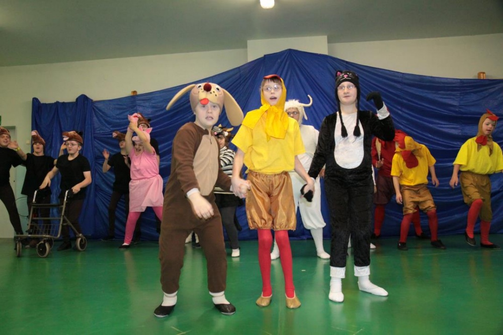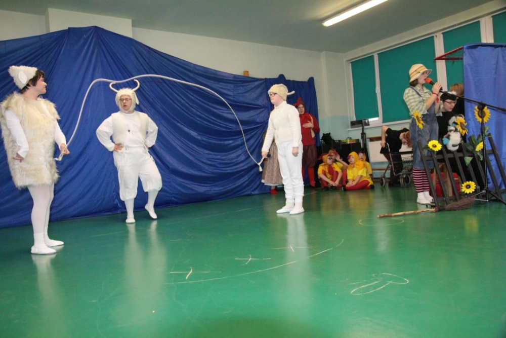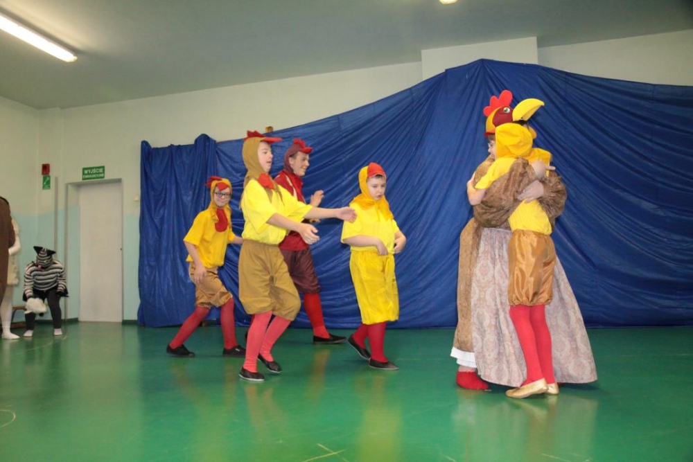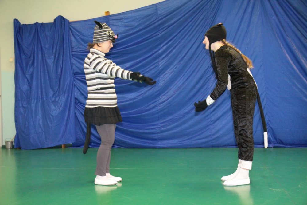 ,,Chcecie słuchać, to opowiem o pewnym podwórku, kocie Miłku i o piesku – szaroburym Burku…”. Tymi słowami zespół BAJ, 19 listopada 2014 roku, powitał szkolną widownię na premierze nowego spektaklu teatralnego pt. ,,Przyjaciele z podwórka”. Od początku roku szkolnego wszyscy aktorzy ciężko pracowali, aby zaprezentować nowe przedstawienie. Dzisiejszy pierwszy występ, był równocześnie scenicznym debiutem dla Agnieszki Cząstkiewicz i Mateusza Masarczyka. Wszyscy aktorzy zostali nagrodzeni gromkimi brawami, za które serdecznie dziękujemy najwierniejszej szkolnej widowni.