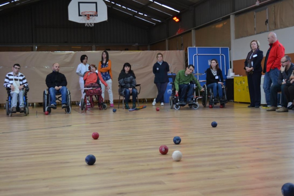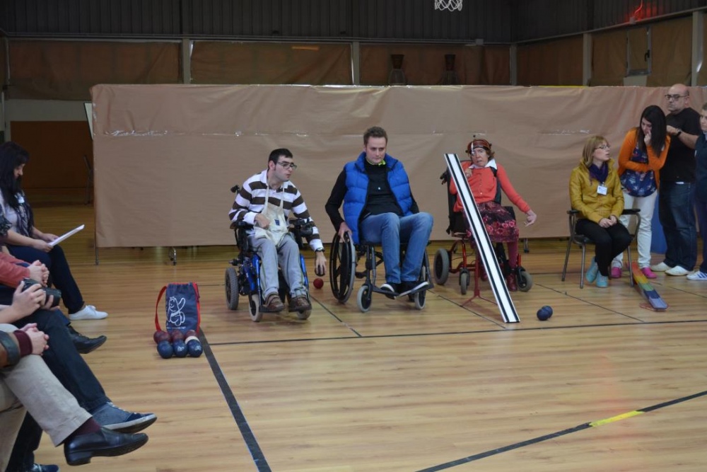Następnego dnia mieliśmy możliwość zapoznania się z placówką, z którą nawiązaliśmy współpracę. Organizowane są tam zajęcia dla dzieci i młodzieży z niepełnosprawnością ruchową i intelektualną. Budynek w którym odbywają się zajęcia jest doskonale przystosowany dla osób z niepełnosprawnością ruchową - windy, schody podjazdy itp., ale posiada również doskonałą bazę dydaktyczną, a przede wszystkim pedagogów i pomoce nauczyciela, którzy z entuzjazmem profesjonalnie podchodzą do swojej pracy. Szczególnie zainteresowały nas instrukcje prawidłowego karmienia poszczególnych uczniów, dogoterapia oraz siedziska - odlewy gipsowe na krzesła. Zaprezentowano nam rozgrywkę w boccia, w której grali nie tylko podopieczni ale także uczestnicy spotkania z różnych krajów. Naprawdę nie była to łatwa przeprawa i ….. przegraliśmy.