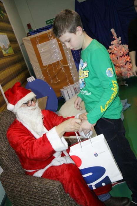 Podczas przerwy świątecznej św. Mikołaj zadzwonił do swoich pomocników z zapytaniem, czy w naszej szkole są grzeczne dzieci? Pomocnicy Mikołaja bez zastanowienia odpowiedzieli, że nasi milusińscy to najgrzeczniejsze dzieci w Rybniku. Mikołaj słysząc tak dobre wieści przyjechał do Rybnika pod osłoną nocy dostarczając dla naszych uczniów dekoracje świąteczne oraz paczki świąteczne, które w dniu 07.01.2014 trafiły do właściwych odbiorów. Dzięki fundacji PKO mogliśmy obdarować naszych uczniów słodkimi podarkami, które wywołały ogromną radość i uśmiech na twarzach tych małych i dużych. W imieniu naszym czyli Eweliny Jagieło i Ewy Dudczak (pomocników św. Mikołaja), całej rady pedagogicznej i uczniów bardzo dziękujemy.