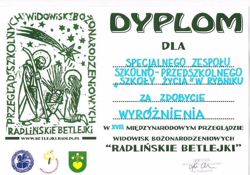 · XVIII Międzynarodowy Przegląd Widowisk Jasełkowych ,,Radlińskie Betlejki”– WYRÓŻNIENIE