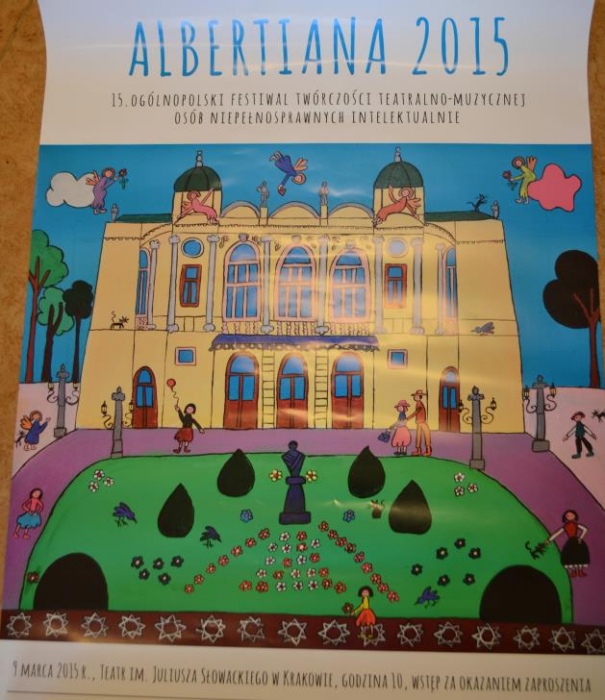 9 marca 2015 roku, w Teatrze im. Juliusza Słowackiego w Krakowie, odbyła się gala 15 Ogólnopolskiego Festiwalu Twórczości Teatralno – Muzycznej Osób Niepełnosprawnych Intelektualnie ,,Albertiana”.Zespół BAJ, jako laureat drugiego etapu, uczestniczył w tym wspaniałym koncercie. Festiwal swym zasięgiem obejmuje całą Polskę, która została podzielona na V regionów. Nasz region – III, obejmował woj. małopolskie, woj. śląskie, woj. opolskie. W drugim etapie eliminacji dokonano oceny 9 przedstawień teatralnych, m.in. naszego: ,,Przyjaciele z podwórka”, które zdobyło III miejsce!. Nagrodą dla zespołu było zaproszenie na widownię, do uczestniczenia w finale festiwalu oraz nagrody rzeczowe. Na deskach teatru wystąpili zwycięzcy konkursu w poszczególnych regionach.