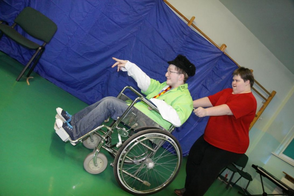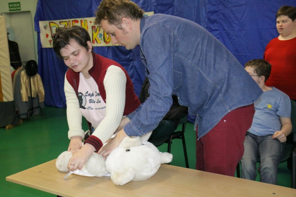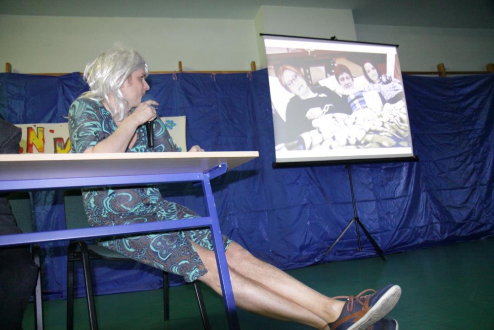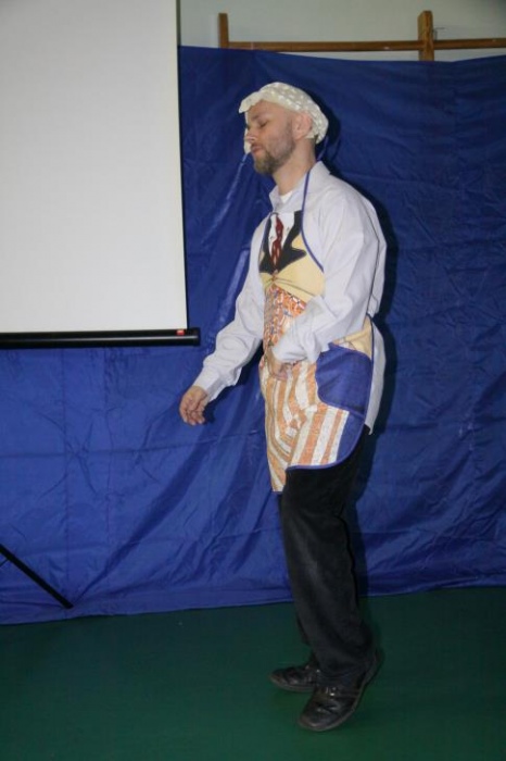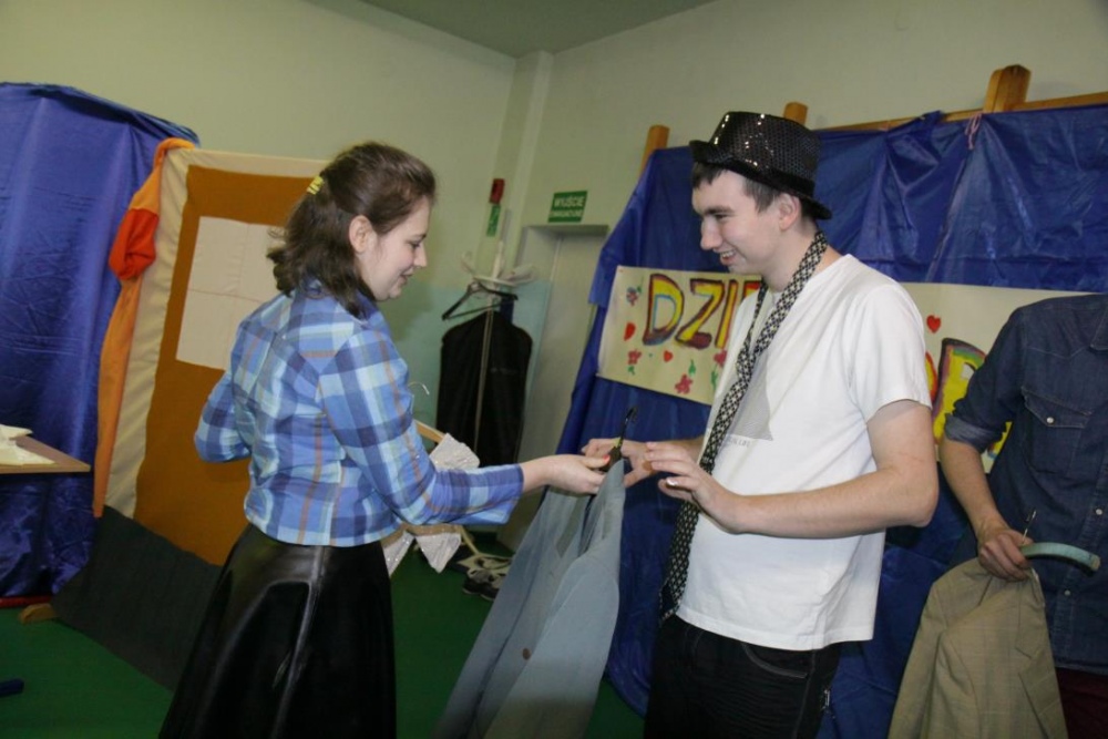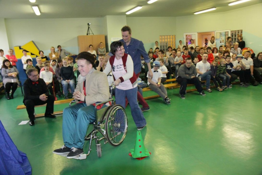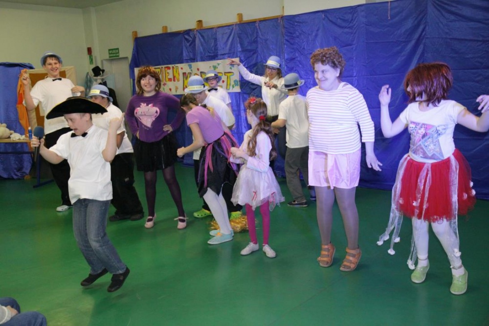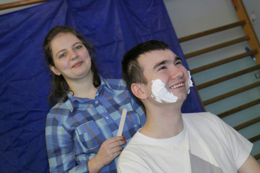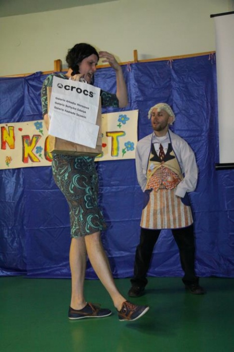 W drugiej części imprezy znalazł się konkurs dla naszych uczniów, do którego inspiracją stał się jeden z programów TV, i który, jak całą imprezę, wszyscy potraktowali z przymrużeniem oka. "Dziadek szuka żony" - to konkurs w którym nasi uczniowie wcielili się w postaci dziadków, a kandydatki wykonywały różne zadania związane z karmieniem, transportem i ubiorem. Oczywiście poradziły sobie rewelacyjnie, a najwięcej śmiechu wywołało zadanie wyboru stroju dla dziadka na spacer.