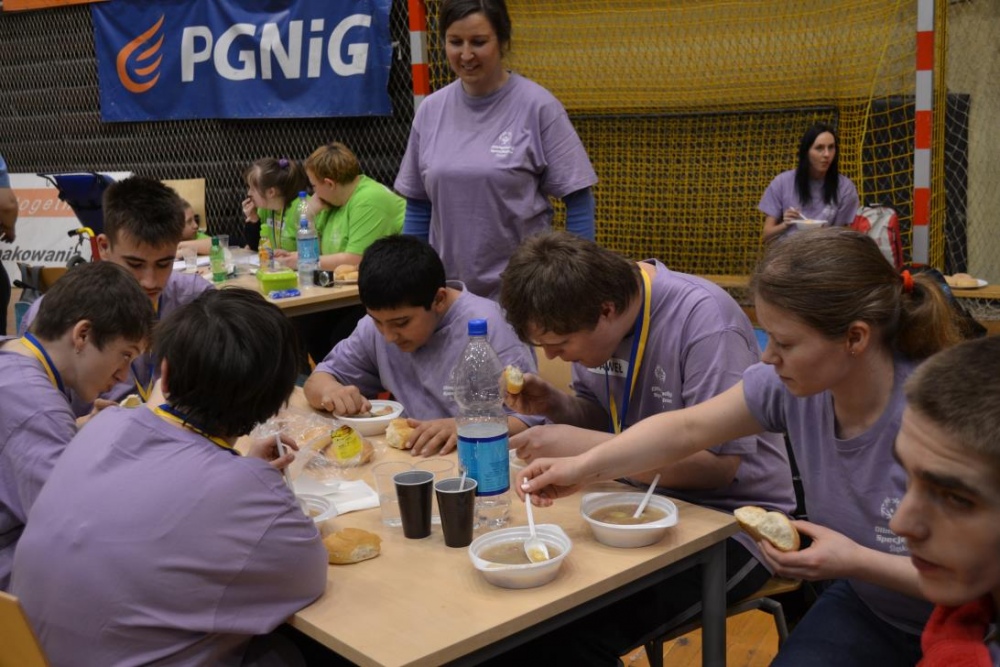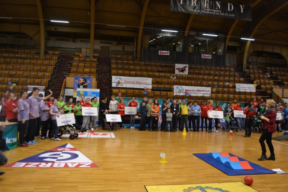KOS KOMETY Zabrze jako organizator tych nietypowych zawodów spisał się doskonale. Zawodnicy poza możliwością zaprezentowania się ze swoimi umiejętnościami w poszczególnych konkurencjach, mieli okazję do zabawy. Wszystko to za sprawą wolontariuszy, którzy grali, tańczyli, puszczali ogromne bańki mydlane, przynosili watę cukrową i pączki, jednym słowem dbali o potrzeby zawodników, zarówno te związane ze sportowym wymiarem zawodów, ale również zabawowym, rekreacyjnym i kulinarnym. Wszyscy zawodnicy wrócili do domu z medalami, dyplomami i pamiątkowymi koszulkami, wszystkim gratulujemy i życzymy dalszej wytrwałości podczas treningów i osiągania coraz wyższych poziomów sprawnościowych. Serdecznie dziękujemy Pani Magdzie Malok, Pani Beacie Meredyk, Pani Patrycji Pawtel, tej ostatniej nie tylko za opiekę podczas zawodów, ale przede wszystkim za pomoc zawodnikom podczas cotygodniowych treningów Programu Aktywności Motoryczne.