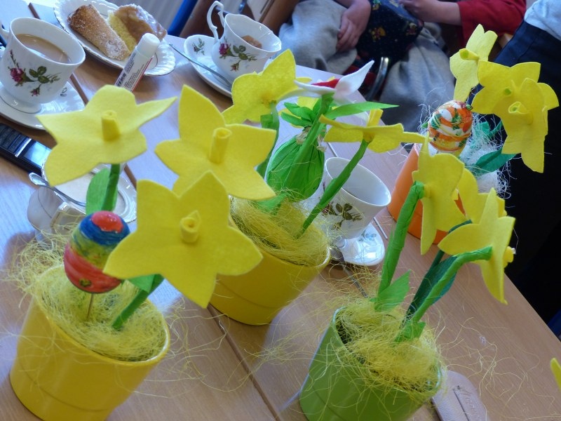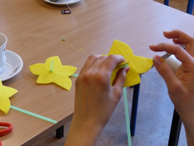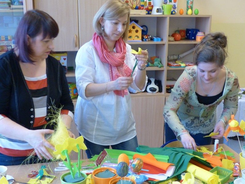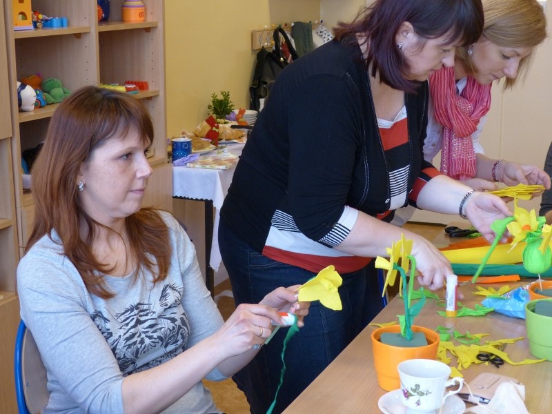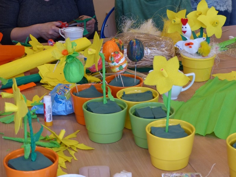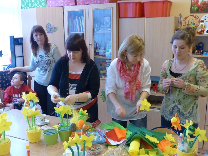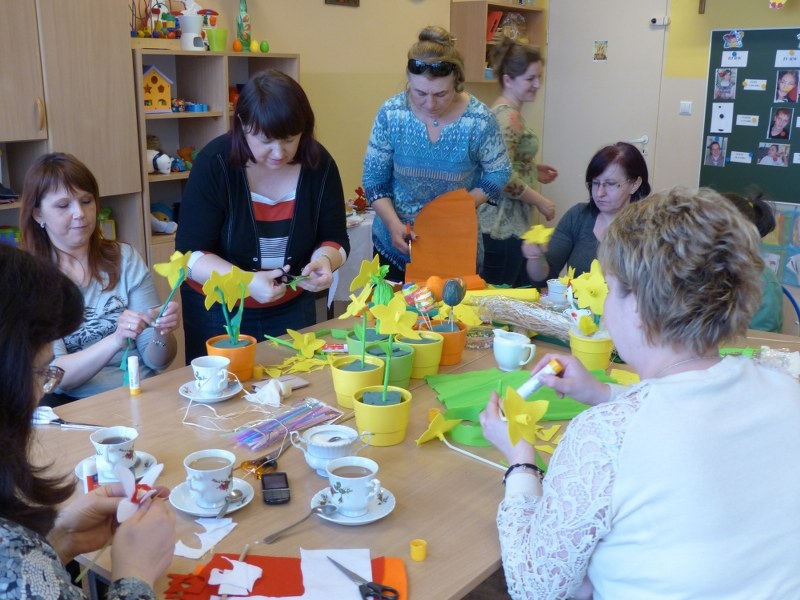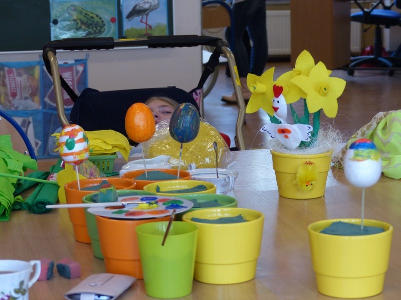 Dnia 25.03.2015r. w III i IV odziałach rewalidacyjno - wychowawczych odbyły się wiosenno - świąteczne warsztaty plastyczne dla rodziców, uczniów i nauczycieli. Tematem spotkania były własnoręcznie wykonane żonkile i kolorowe pisanki. Swoją obecnością zaszyciły nas p. dyrektor Lucyna Ibrom, i p. vice dyrektor Danuta Ficner zaskakując nas kreatywnymi pomysłami. Towarzyszyła nam miła, ciepła, rodzinna atmosfera świąteczna przy wielkanocnej babie, zapachu bukszpanu i dobrym nastroju wszystkich obecnych. Na pamiętkę spotkania każdy zabrał świąteczny stroik do domu. Warsztaty prowadziły I. Świerczyna i Z. Zatoń. Zapraszamy do obejrzenia galerii zdjęć.