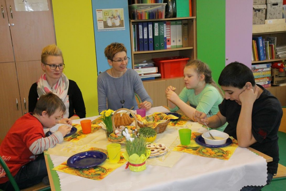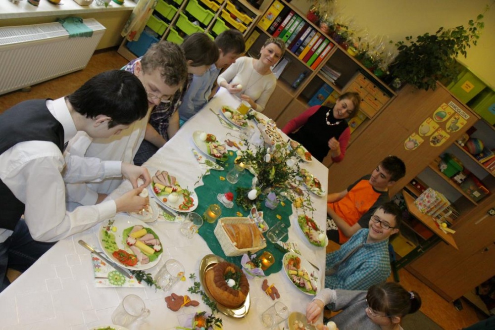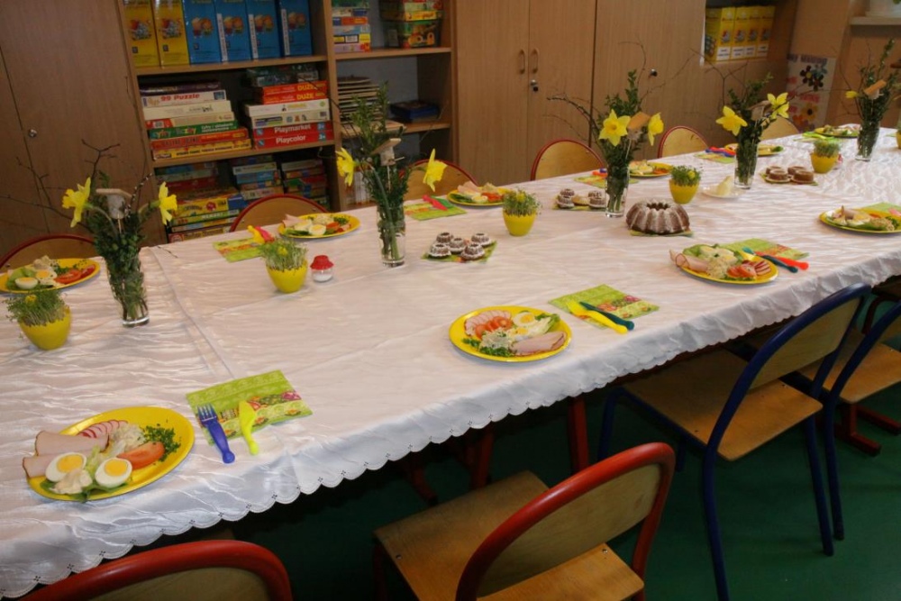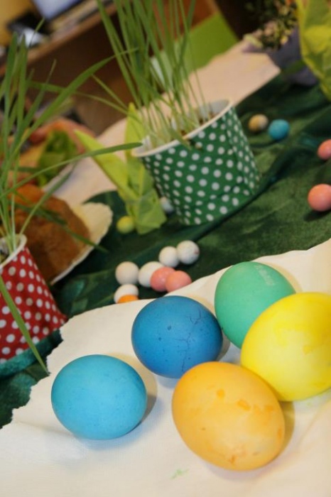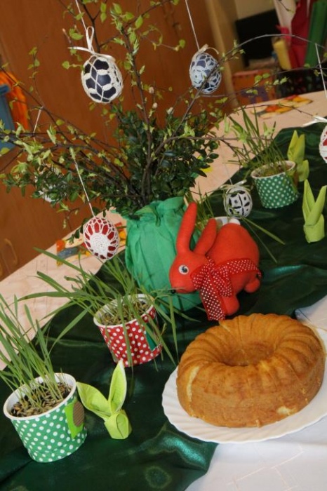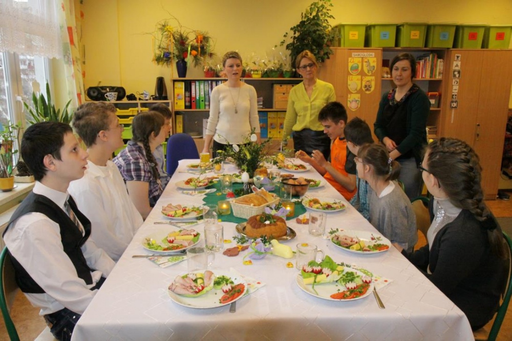 Tego dnia od rana w klasach trawją przygotowania. Farbowanie jajek, przygotowanie potraw, dekorowanie i nakrywanie stołów. W tym roku pierwszaki z Ia, wspólnie z rodzicami, tuż przed śniadaniem, odbyli krótką lekcję dydaktyczną związaną z wielkanocą i świątecznymi potrawami.