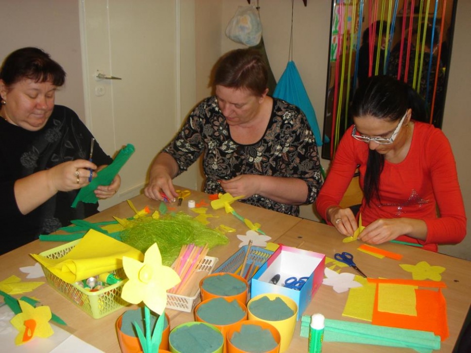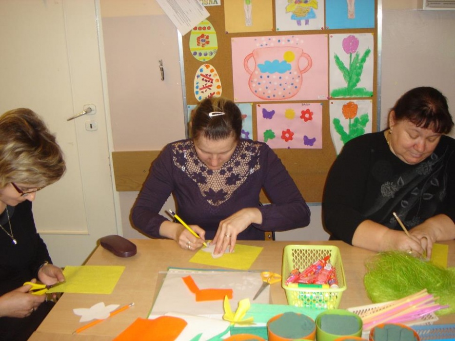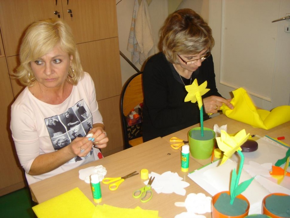 Już po raz drugi odbyły się w I i II oddziale rewalidacyjno – wychowawczym warsztaty dla rodziców połączone ze świątecznym spotkaniem. Rodzice tworzyli wiosenno – świąteczne kompozycje, z wykorzystaniem różnych materiałów i technik plastycznych. Wykonali wiosenne kwiaty z filcu, bibuły i słomki do picia oraz świąteczne baranki, gdzie wykorzystali ręczniki jednorazowe i szpatułki laryngologiczne. Panowała miła i świąteczna atmosfera wypełniona zapachem cytrynowej babki. Dziękujemy rodzicom oraz pani dyrektor Lucynie Ibrom i wice dyrektor Danucie Ficner za udział w warsztatach, które przygotowały Adrianna Kuźmińska i Monika Niesłańczyk.