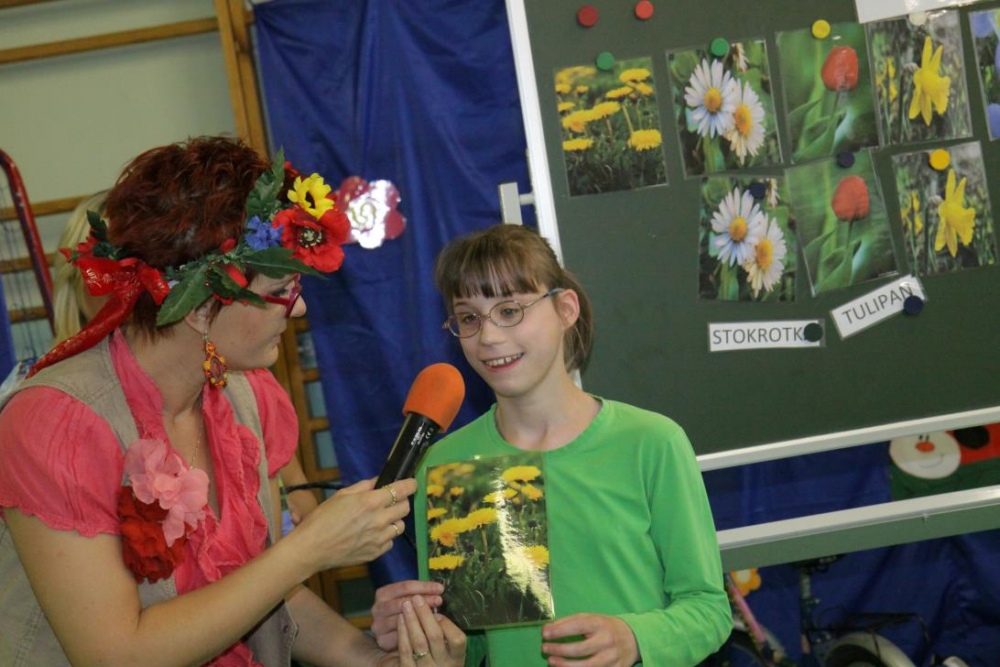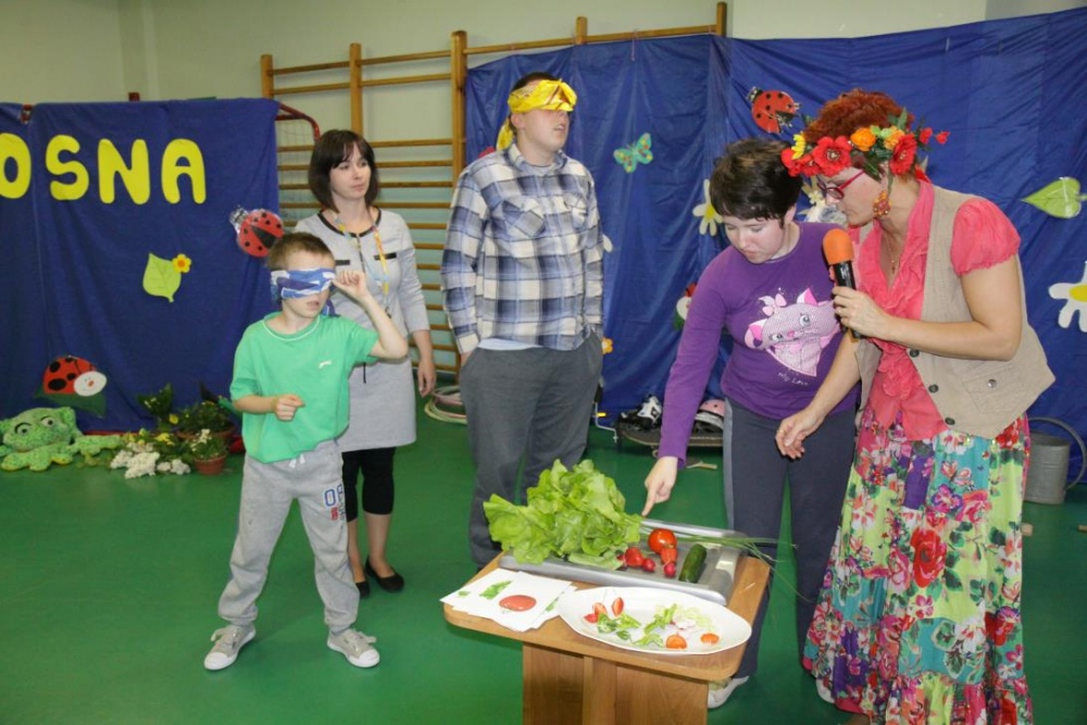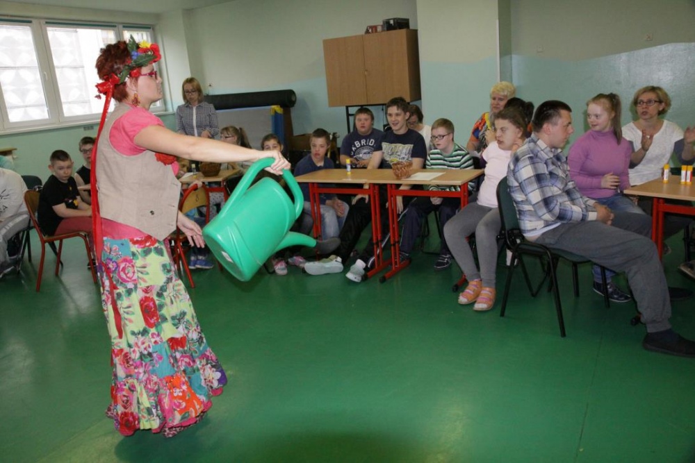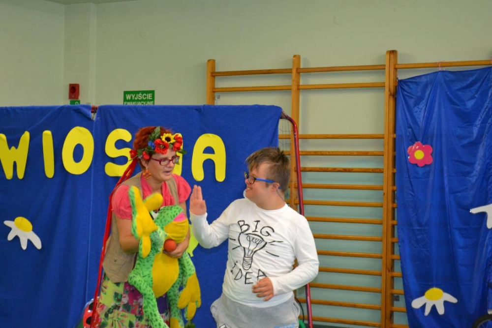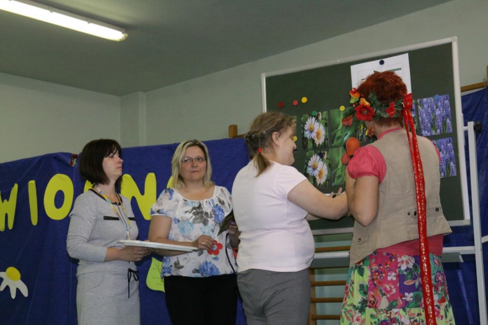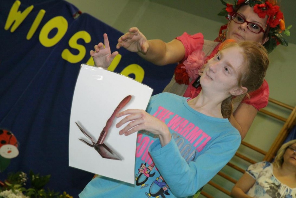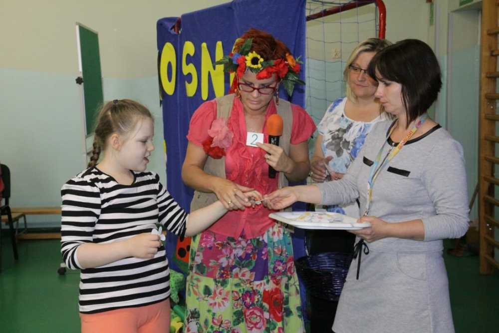 21 maja 2015r. Pani Wiosna odwiedziła uczniów Szkoły Podstawowej. Przygotowała dla nich wiele konkurencji, jak zawsze część konkurencji była indywidualna, część grupowa. Było nazywanie narzędzi ogrodniczych, rozpoznawanie po smaku oraz z zawiązanymi oczami „nowalijek”, wskazanie „takiego samego” kwiatka oraz przeliczanie i naklejanie kwiatów na drzewie. Był wybór obrazka z sprzętem do uprawiania sportów wiosennych i dopasowanie go do właściwego sprzętu. Konkurencje dotyczyły także zwierząt łąkowych: były bocianowe puzzle, żabie skoki przy akompaniamencie pana Darka „Była sobie żabka mała…”i utrwalenie figur geometrycznych podczas przyozdabiania wiosennego motyla.