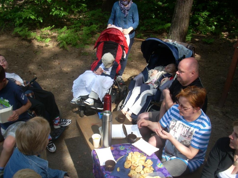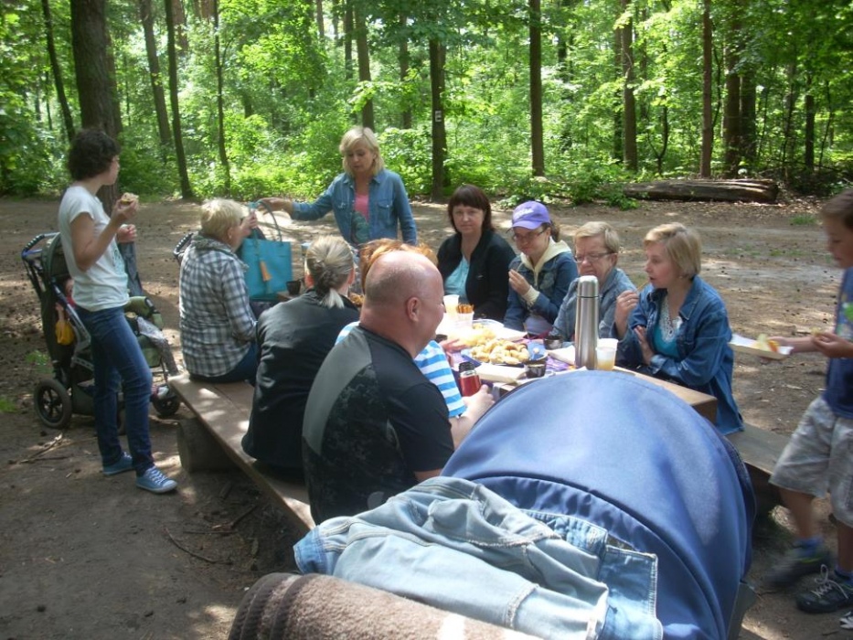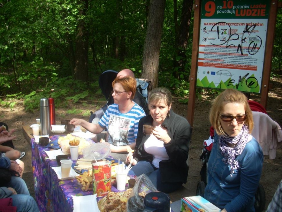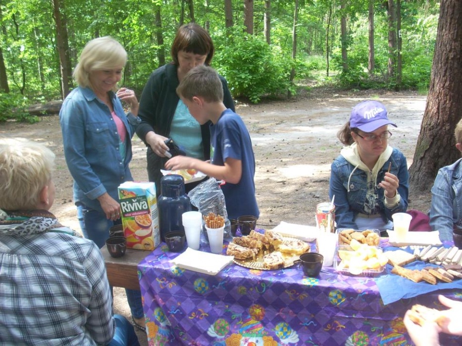 Dnia 1 czerwca 2015r. podopieczni zespołów rewalidacyjno – wychowawczych wraz z rodzicami i nauczycielami wyruszyli na wycieczkę do pobliskiego lasu. Głównym celem było wielozmysłowe poznawanie przyrody oraz integracja wychowanków i rodziców. Uczniowie wsłuchiwali się w odgłosy natury i zbierali szyszki. Po spacerze po lesie odbył się rodzinny piknik z okazji Dnia Dziecka. W tym szczególnym dniu dopisywała nam nie tylko słoneczna pogoda ale również dobre humory. Wycieczkę zorganizowały: M. Niesłańczyk, A. Kuźmińska i I. Świerczyna.