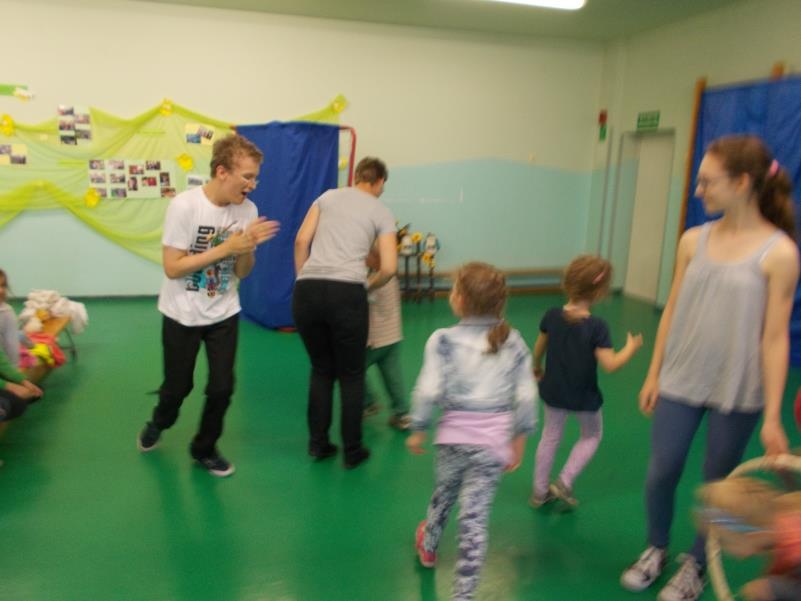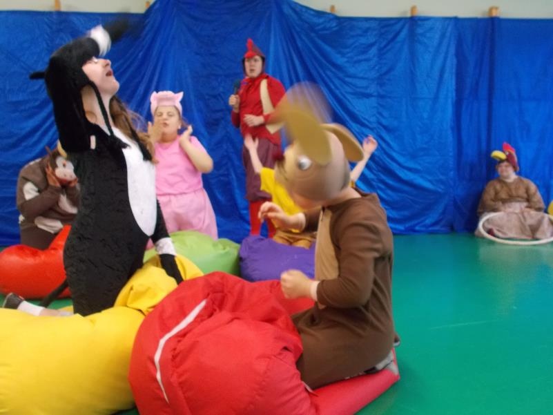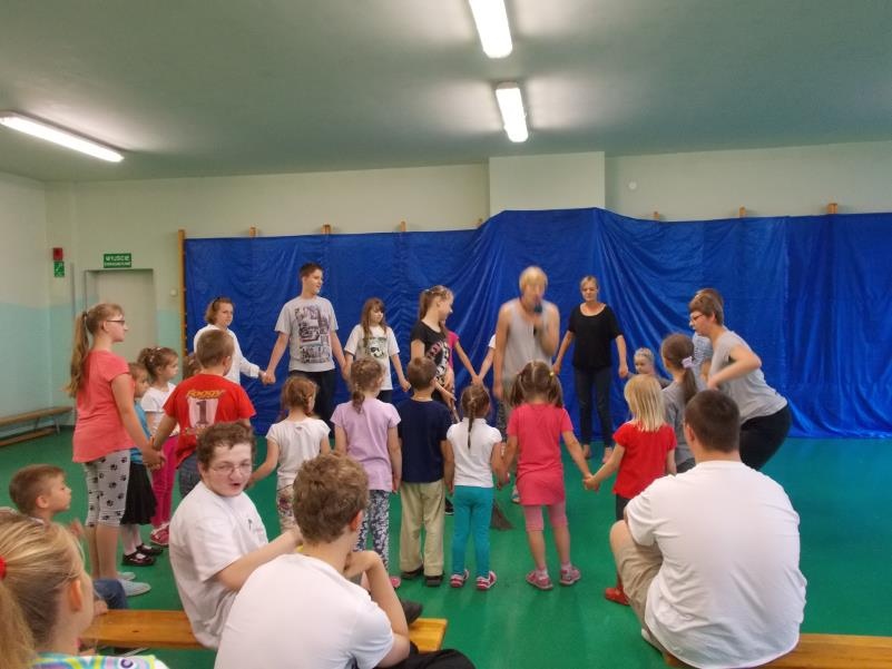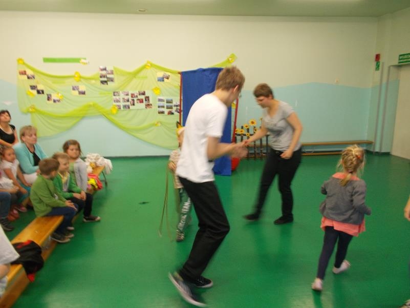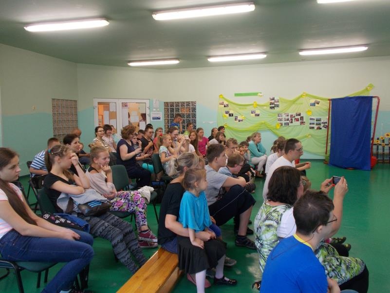 15 czerwca 2015 roku sala gimnastyczna wypełniła się przedszkolakami i uczniami ZS-P NR 7, którzy przyjęli zaproszenie na nasz spektakl ,,Przyjaciele z podwórka”. Występ został przyjęty z wielkim zainteresowaniem. Wyrazem tego, były między innymi wspólne działania teatralne, integrujące widzów i aktorów.