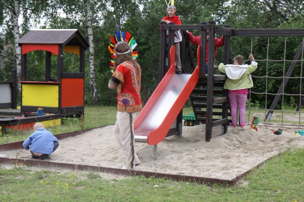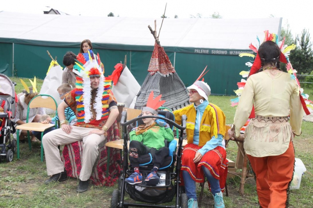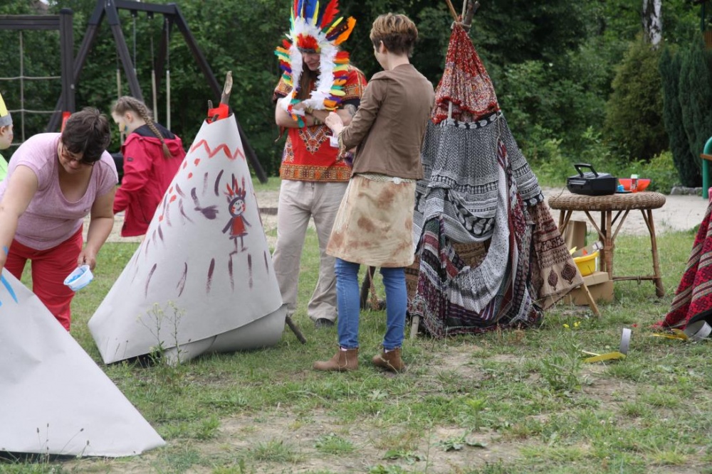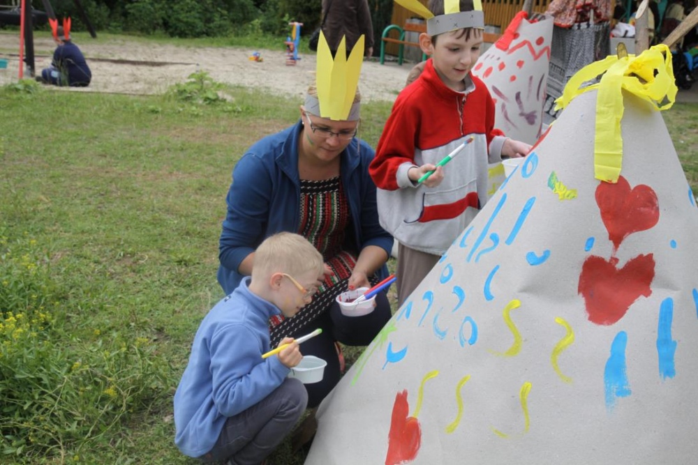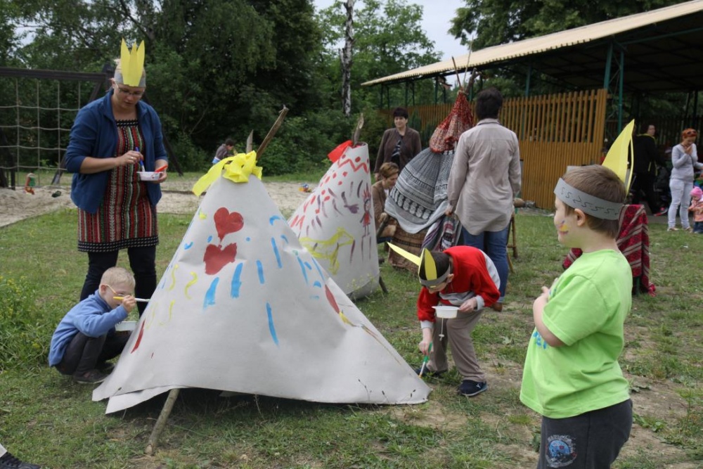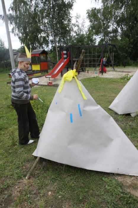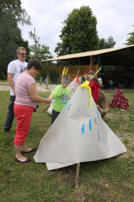 Podczas, gdy mali indianie dosiadali konika, inni ozdabiali indiańskie wigwamy, a także częstowali się grilowanymi kiełbaskami - podobno z bizona;).