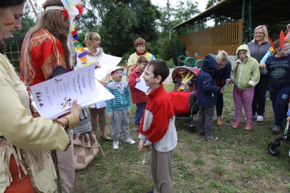 Dnia 22 czerwca 2015r. Ośrodek Hipoetarpii w Rybniku - Niedobczycach, gdzie nasi uczniowie od 16 lat realizują zajęcia terapeutyczne, zamienił się w mini indiańską wioskę ICHA CHA. Na grila po indiańsku, kandydatów na Małych Indian - przedszkolaków, pierwszaków oraz uczniów kl II SP zaprosił wielki Wódz Indiański RYCZĄCY BAWÓŁ. Na imprezę nasi podopieczni przybyli pod opieką Satrszyzny Plemienia - czyli swoich rodziców, nauczycieli i opiekunów.