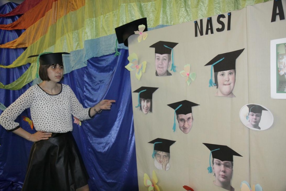 Tegoroczni absolwenci naszej szkoly: Daria Sujewicz, Róża Plączkowska, Agnieszka Janik, Barbara Węglorz, Alicja Buc oraz Dominik Magnewski, podczas wspólnej imprezy żegnali sie z kolegami, swoimi nauczycielami oraz innymi pracownikami szkoły.