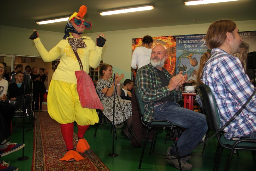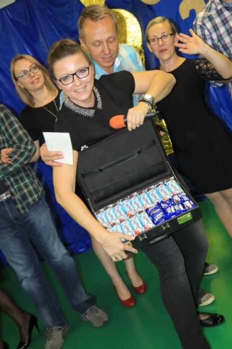 Statuetkę przedstawicielom naszych uczniów wręczyła sławna Kaczka Dziwaczka, która porwała chłopaków do tańca.