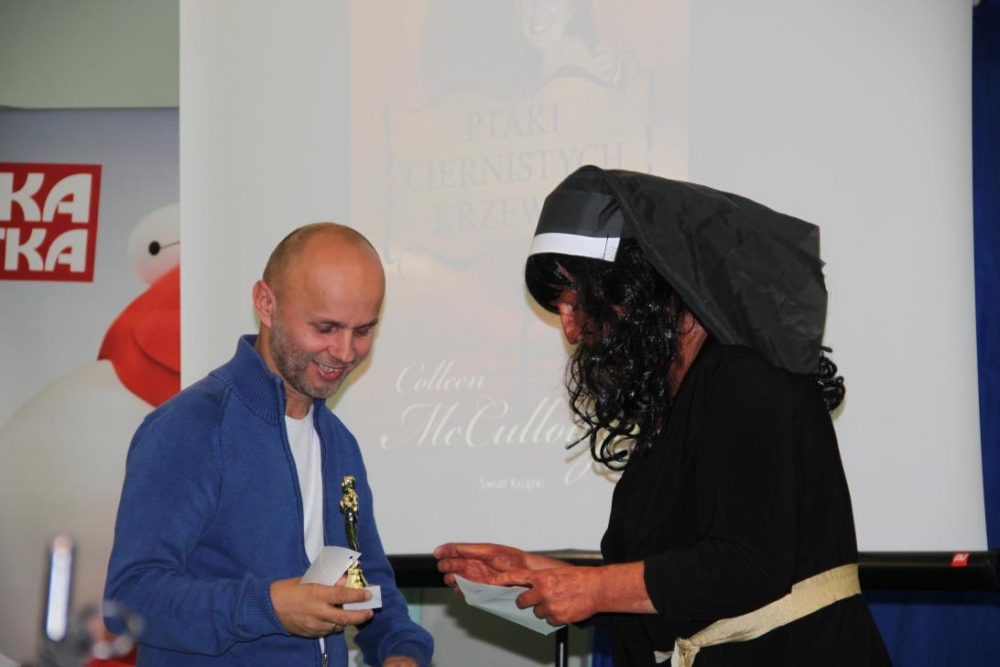 W kolejnej kategorii ROMANS zwyciężył pan Adam Rek, któremu, w zastępstwie nieobecnej Juli Roberts, statuetkę wręczyła Genia Buziaczek - uciekająca Panna Młoda w nowym wydaniu.