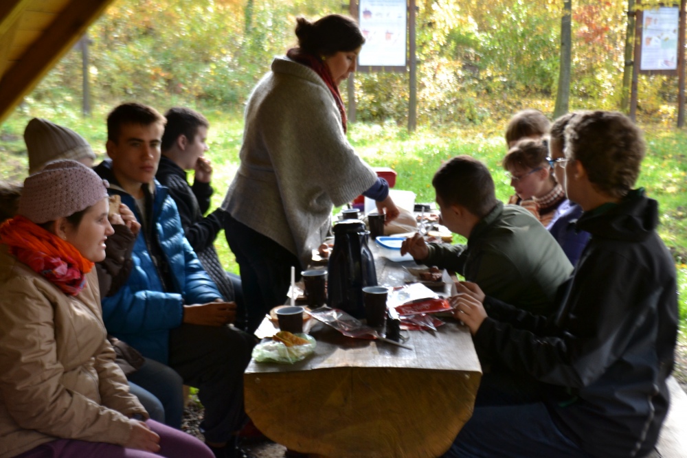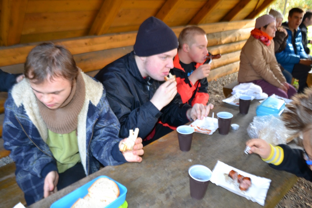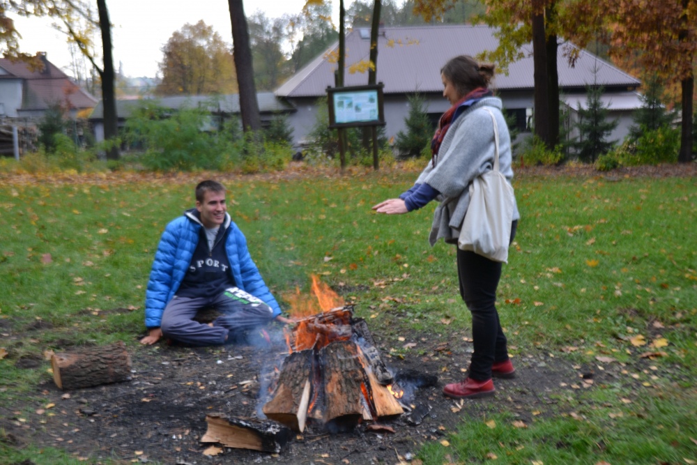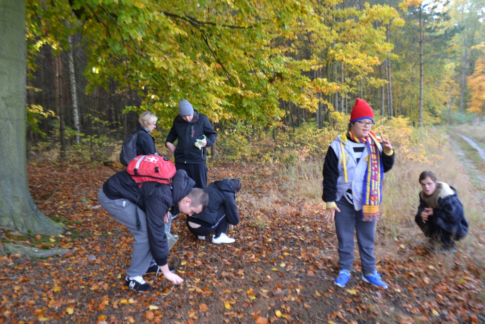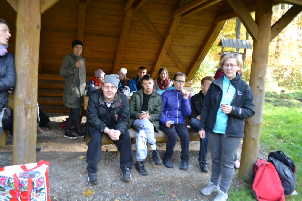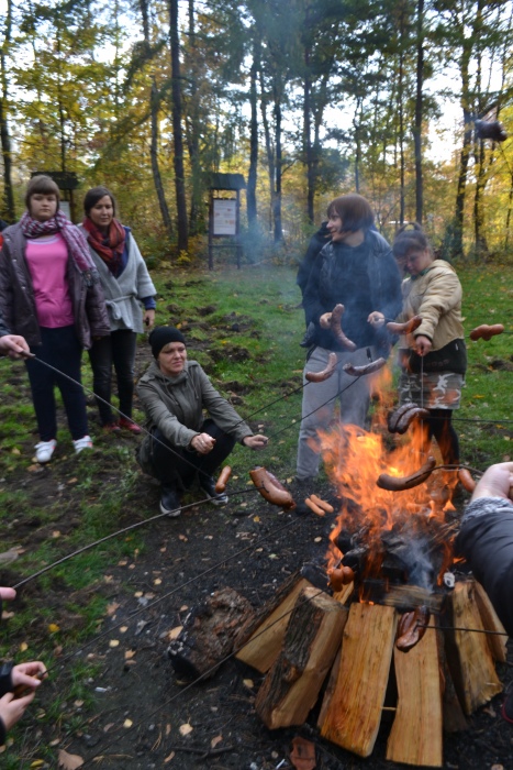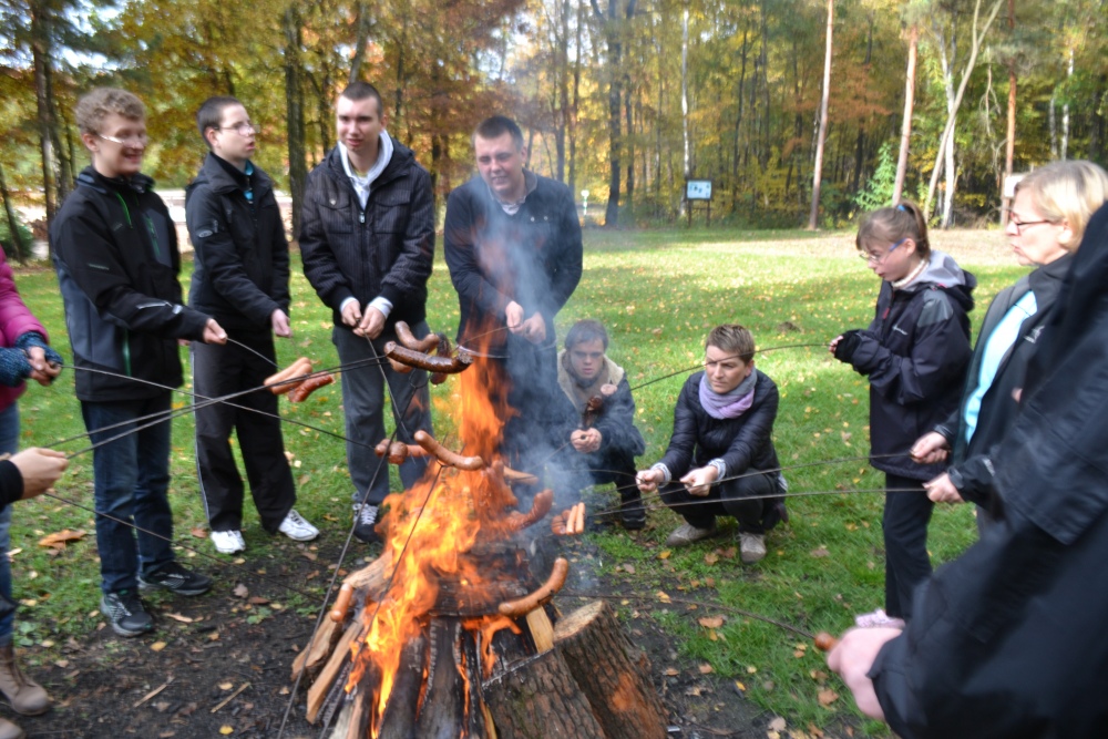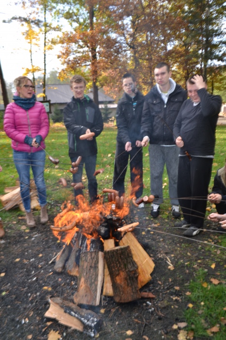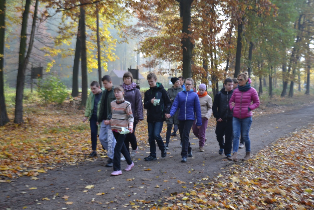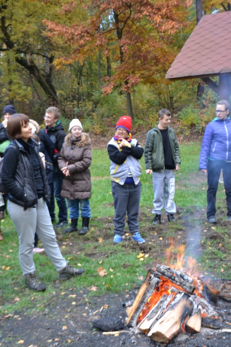 Dzisiejszy poranek przywitał nas pięknym, jesiennym słońcem, które umiliło wycieczkę do rybnickiego lasu, gdzie grupa dwudziestu uczniów spędziła czas obserwując jesienne zmiany w przyrodzie. W trakcie spaceru przypomnieliśmy sobie nazwy leśnych zwierząt, rozmawialiśmy o zasadach zachowania się w lesie i zebraliśmy jesienne dary: liście, żołędzie, szypułki bukowe. Po długim spacerze wszyscy zmęczeni i głodni dotarliśmy na polanę, gdzie dzięki uprzejmości pracowników Zagrody Leśnika, przy ognisku upiekliśmy kiełbaski. Cudowna jesienna aura i dobre humory sprawiły, że był to dzień pełen pozytywnych wrażeń.